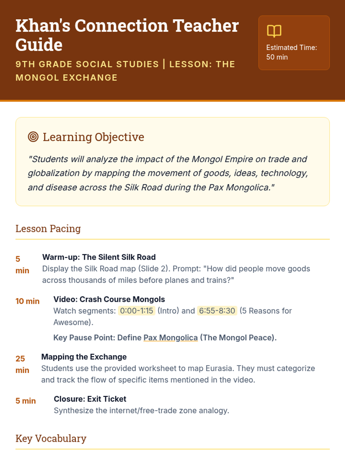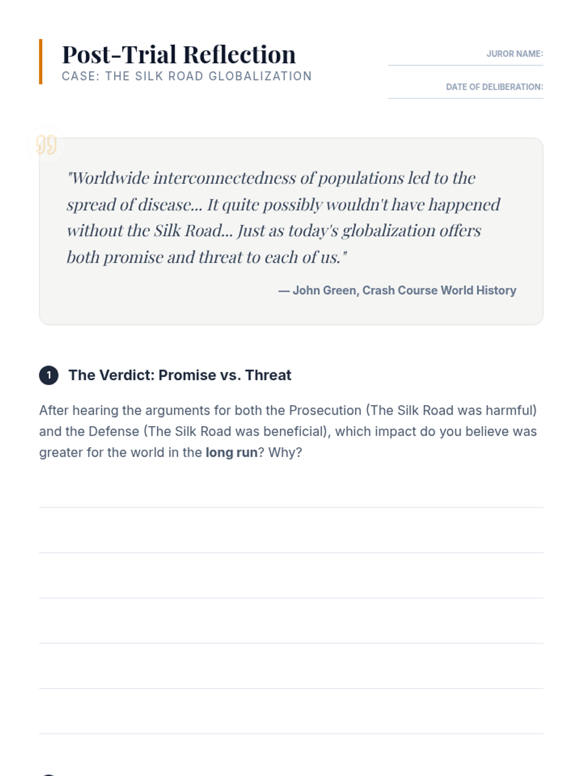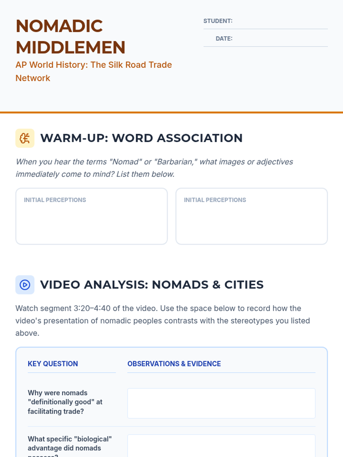 The Silk RoadAncient transcontinental trade networks linking East Asia with the Mediterranean. Examines the exchange of silk, spices, and cultural ideologies between diverse civilizations.
