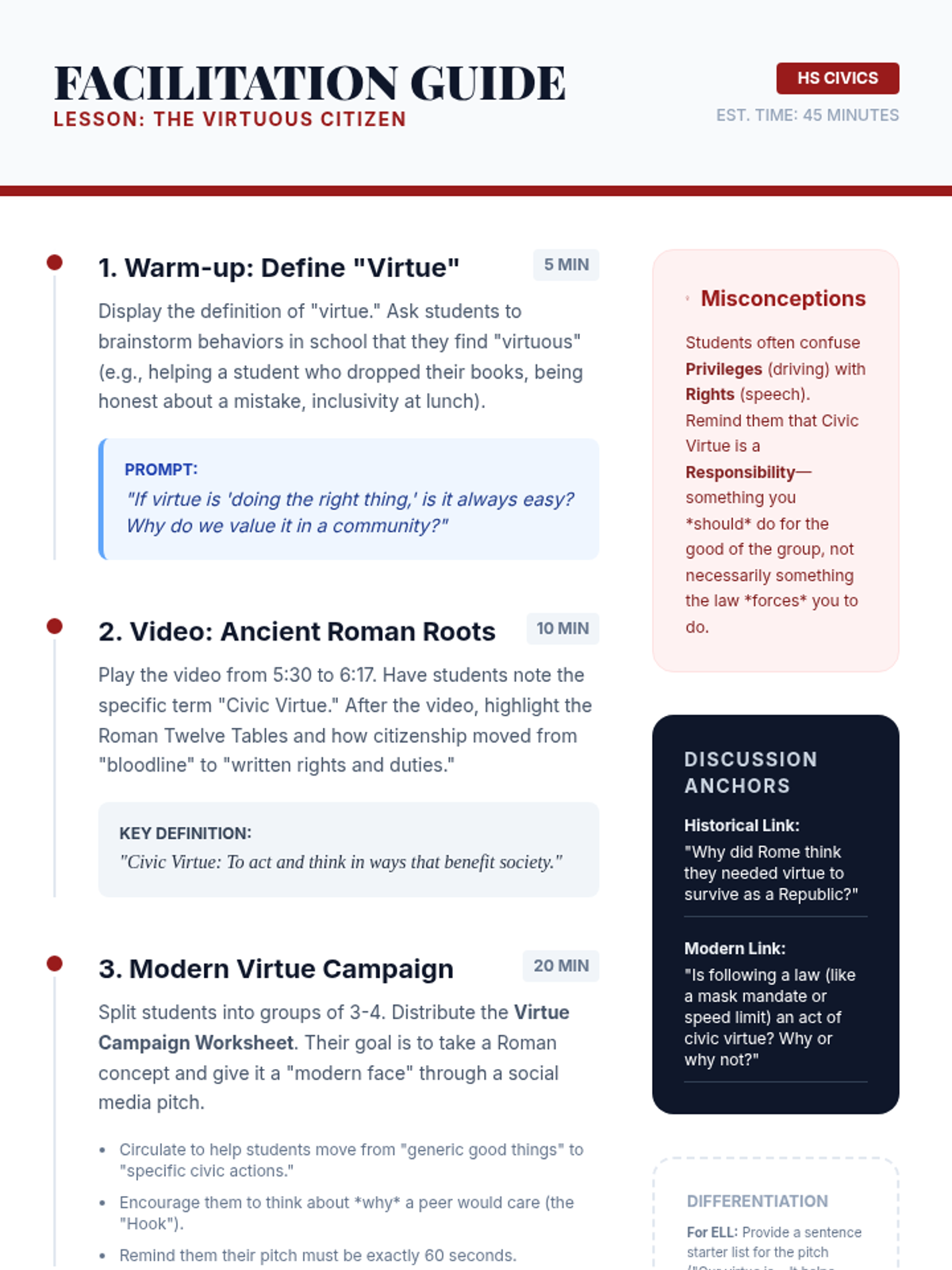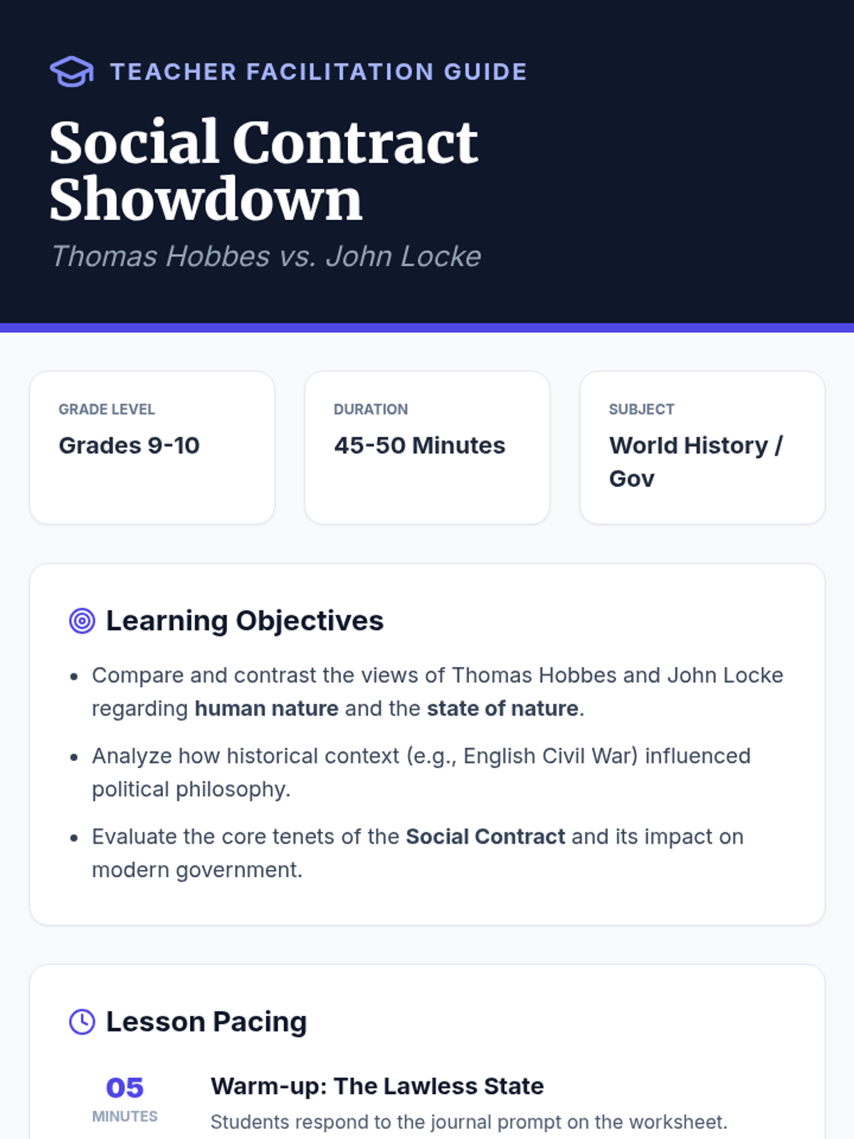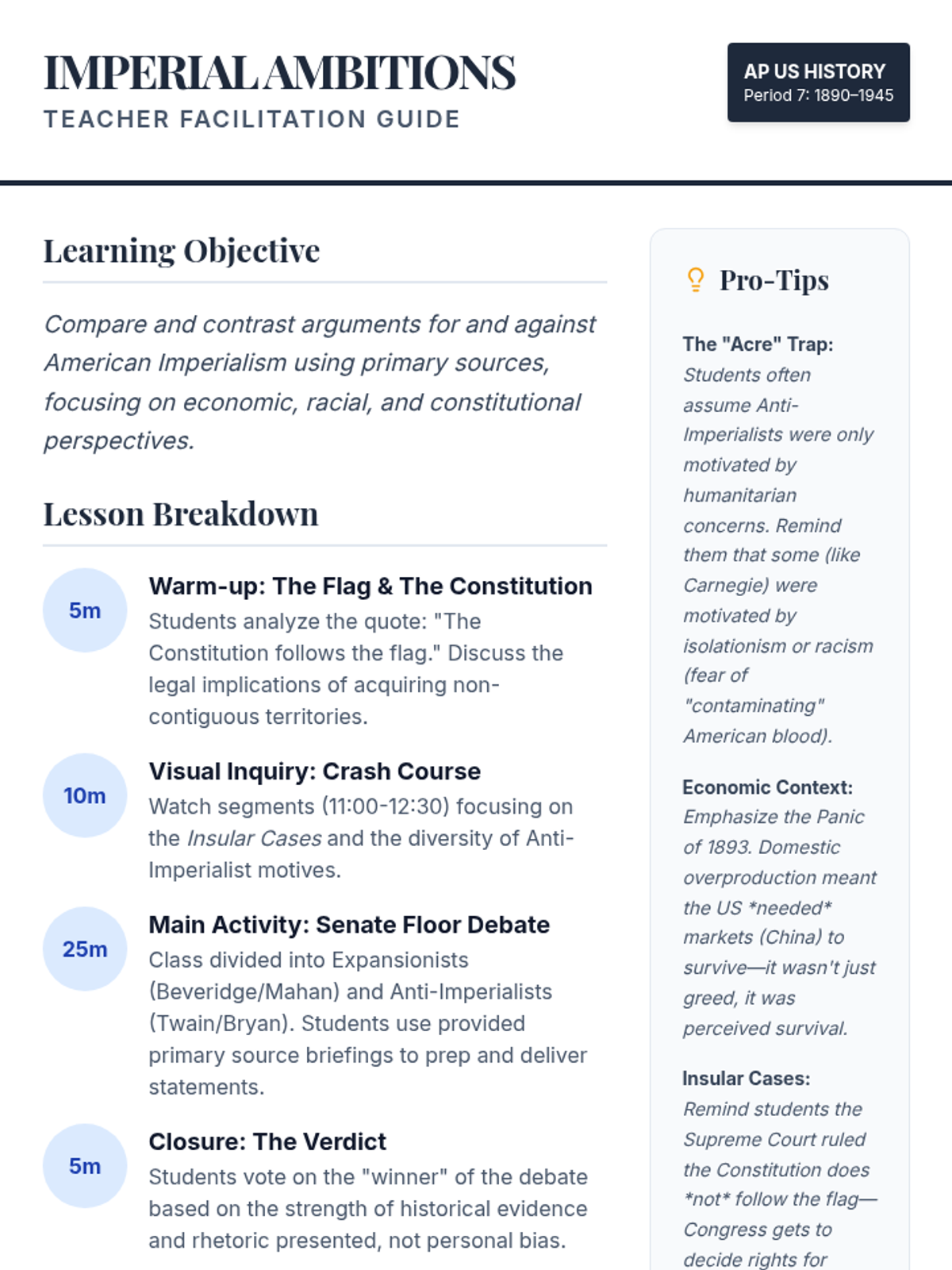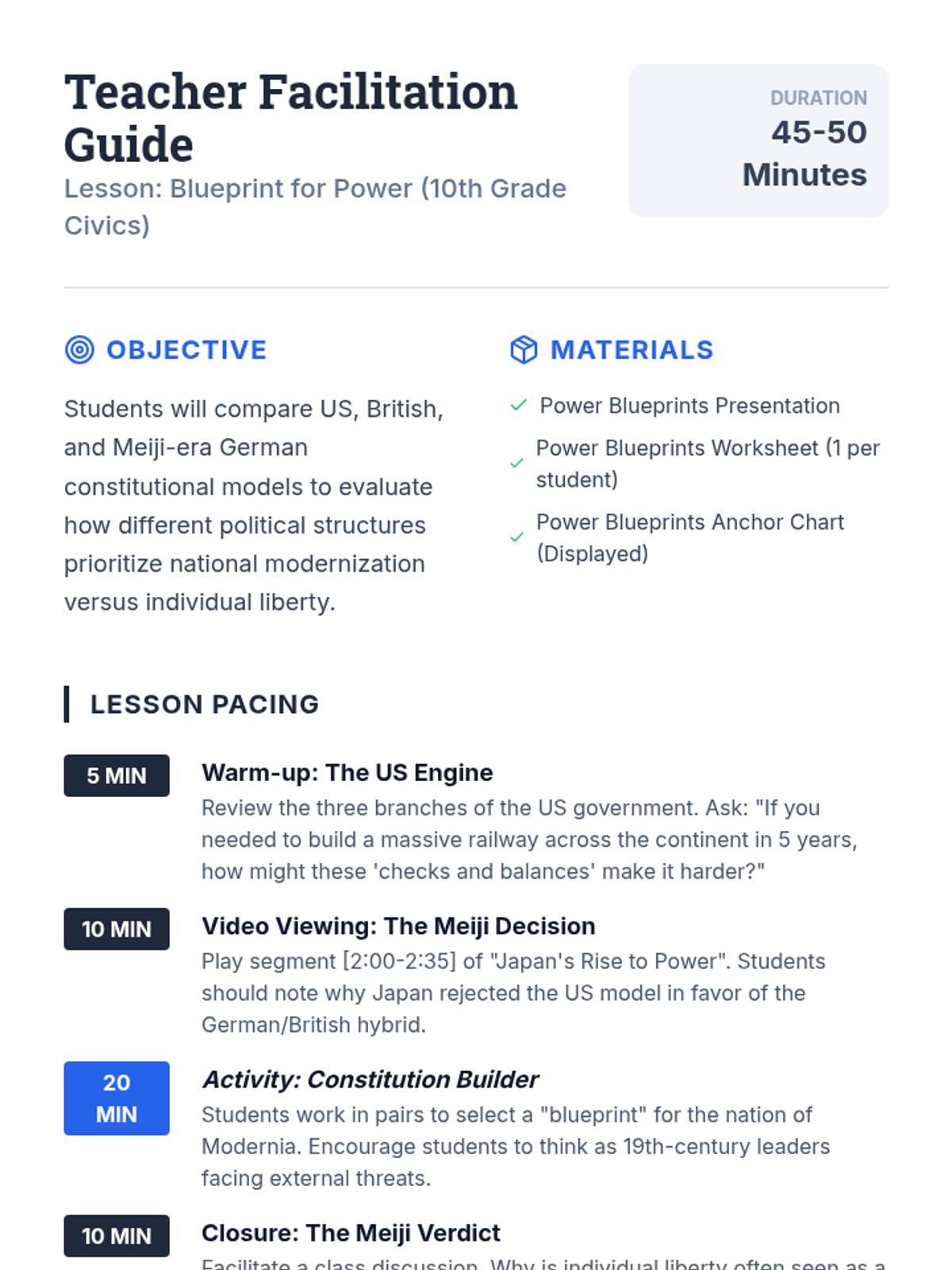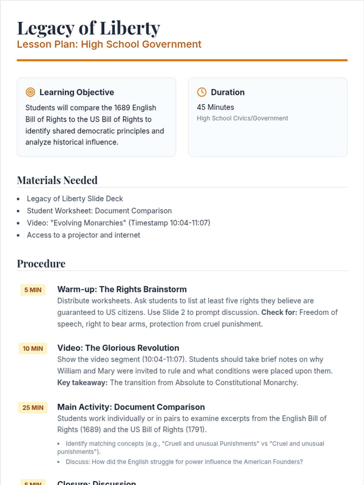 Students will analyze the conflict between Federalists and Anti-Federalists, focusing on the debate over the Bill of Rights and the role of compromise in the ratification process. This lesson uses a high-quality video to explore the 'more perfect union' concept and culminates in a structured debate activity.