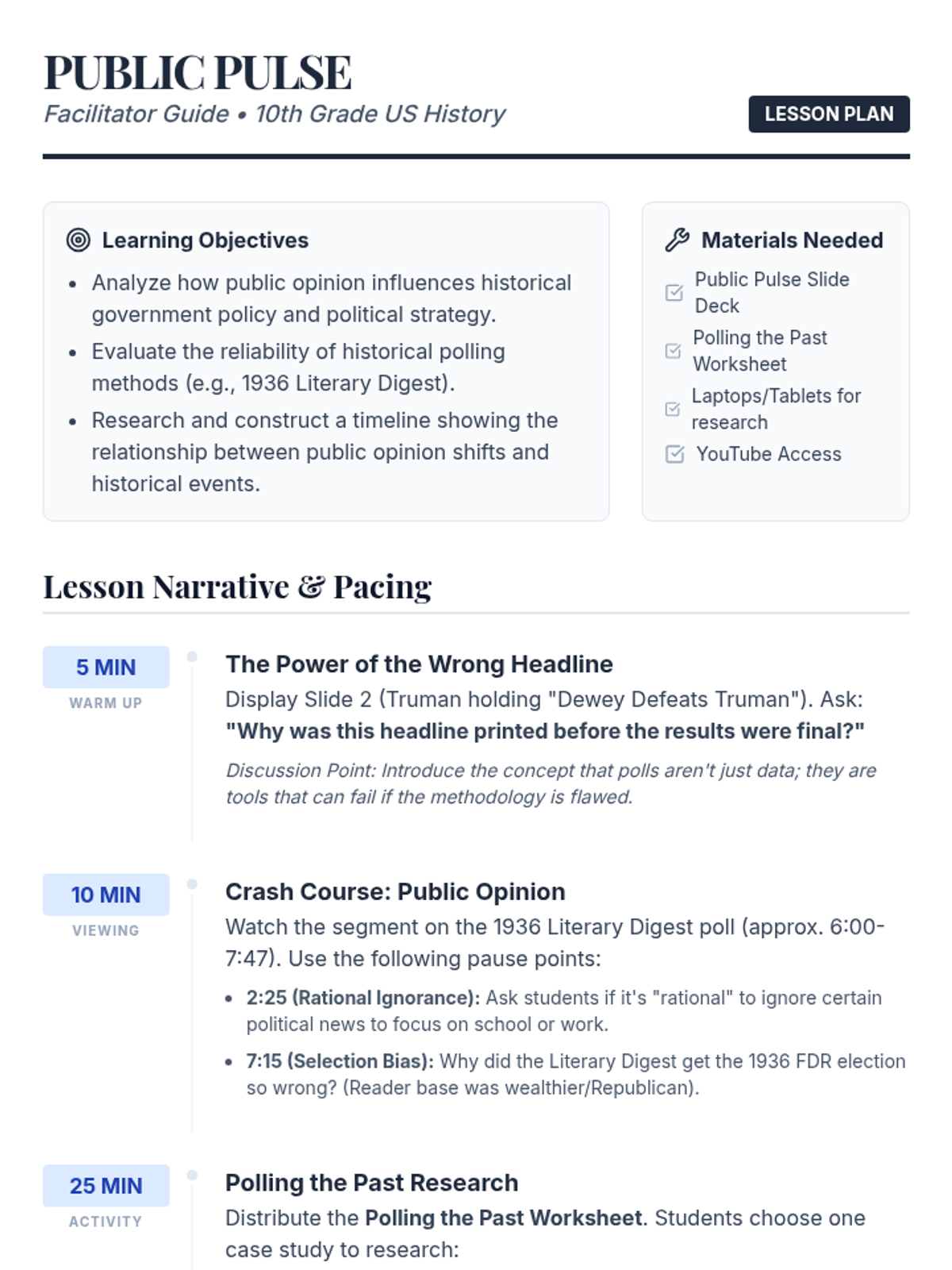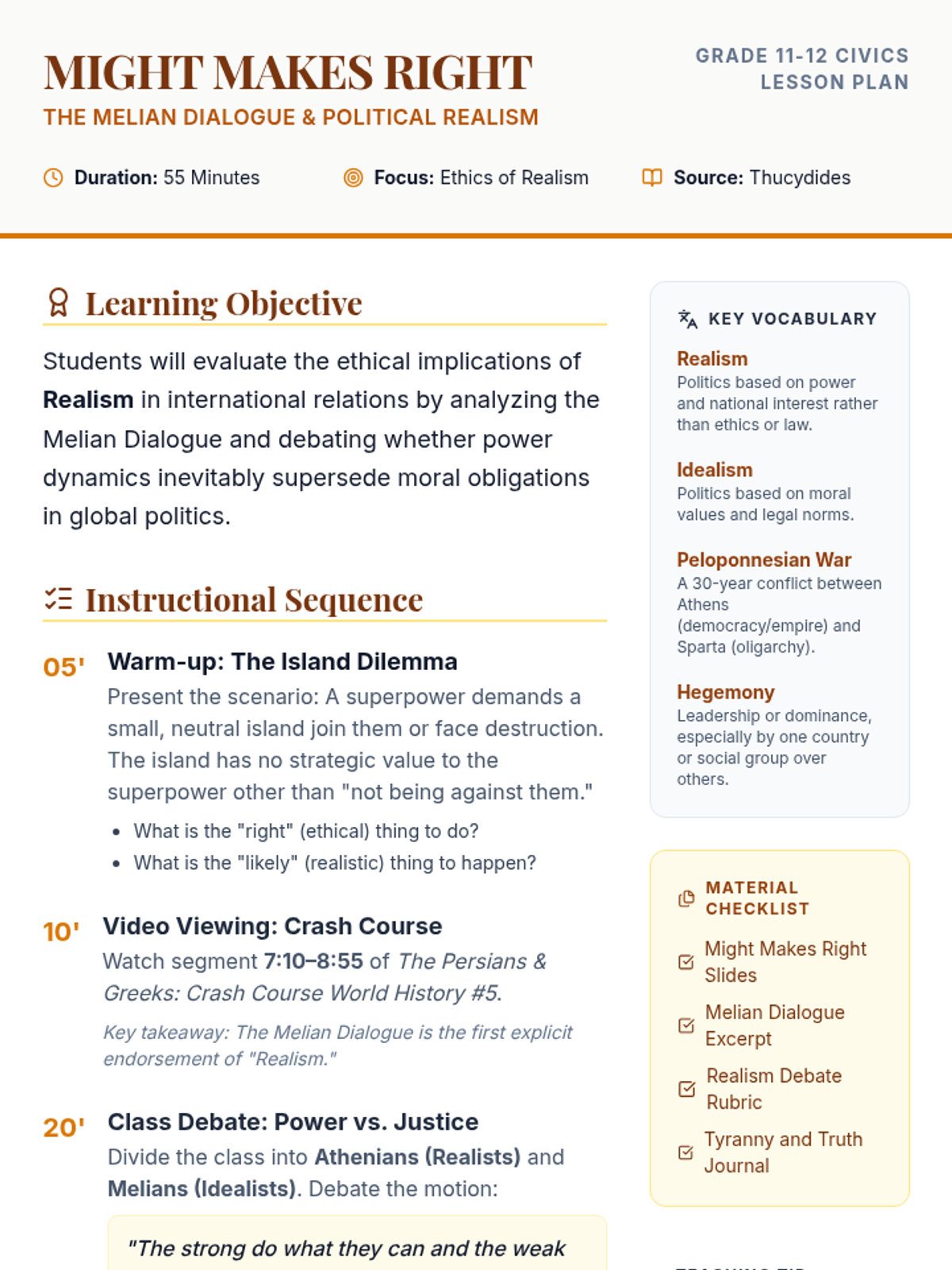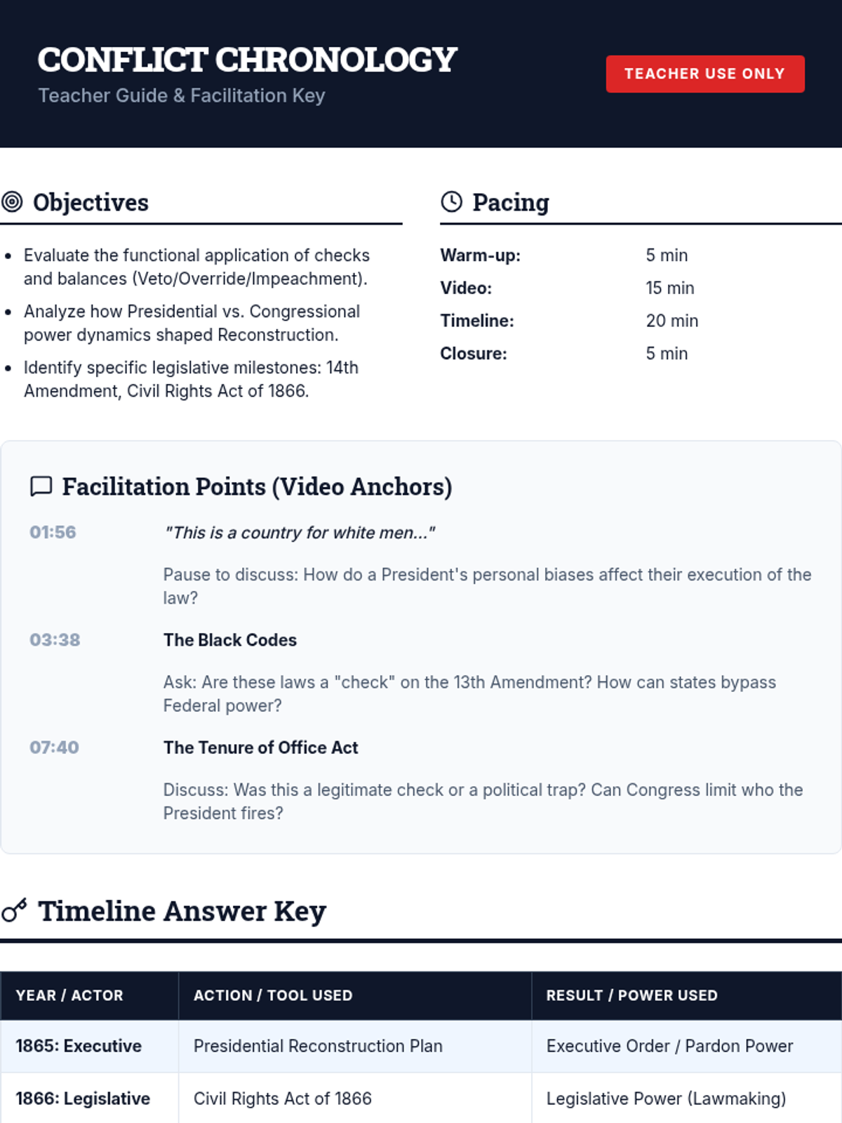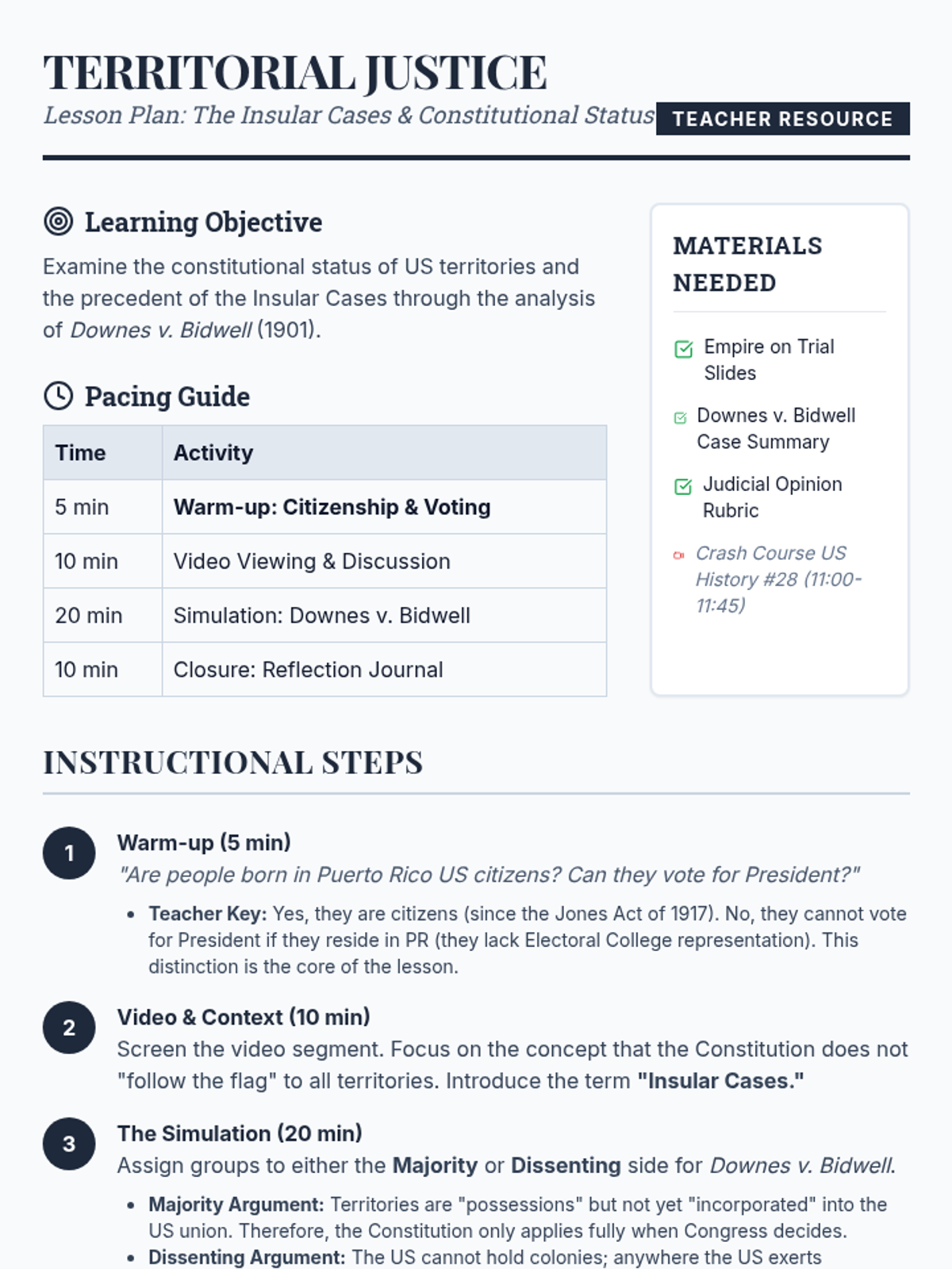 This lesson explores the power of Judicial Review, its origins in Marbury v. Madison, and the democratic tensions between unelected judges and elected representatives. Students will analyze the Supreme Court's role in checks and balances through video analysis and a Socratic Seminar.