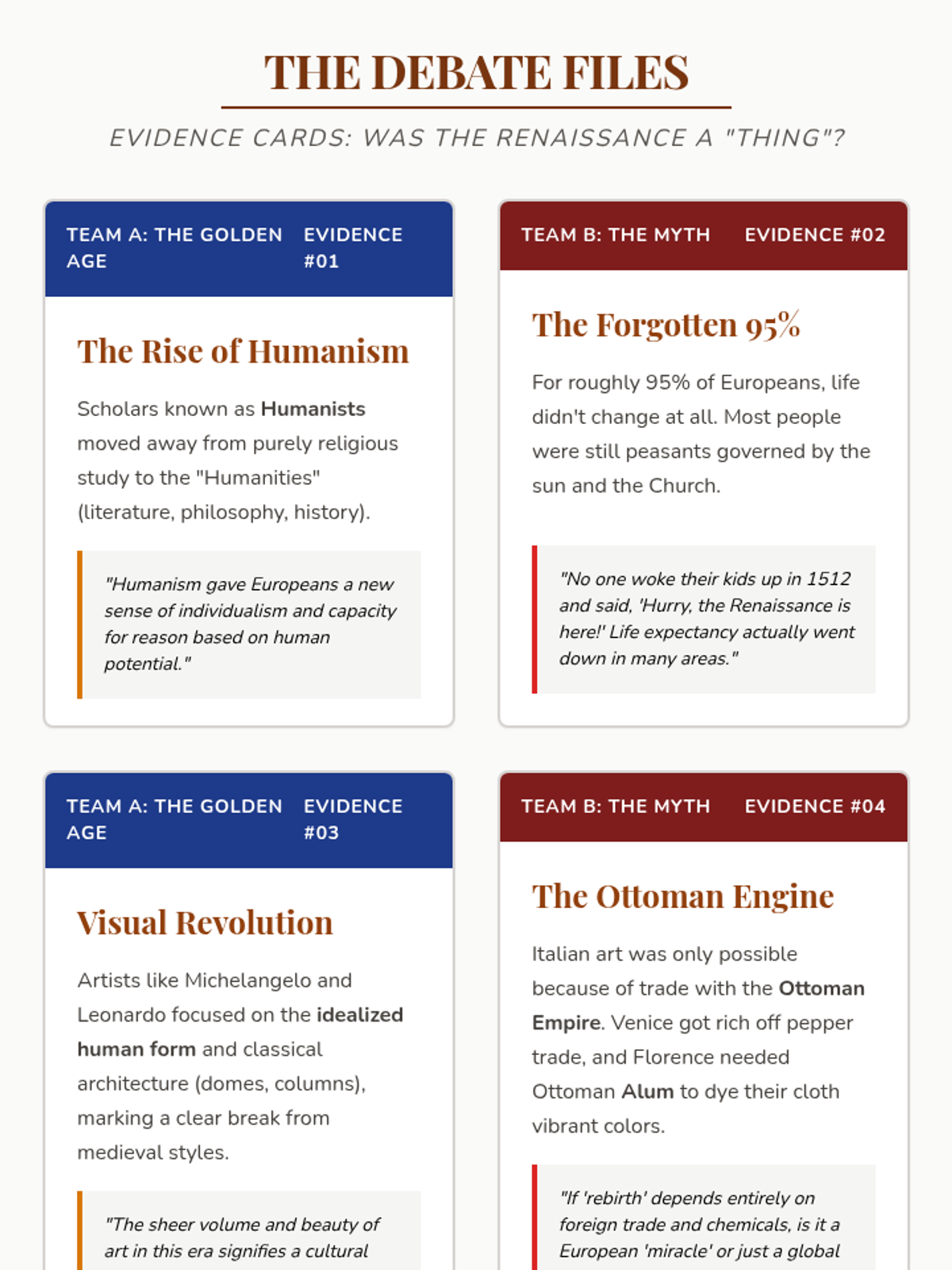 Renaissance PeriodHumanism, artistic techniques like linear perspective, and the revival of classical Greek and Roman philosophy. Examines the impact of the printing press on literacy and the cultural shifts spanning the 14th to 17th centuries.