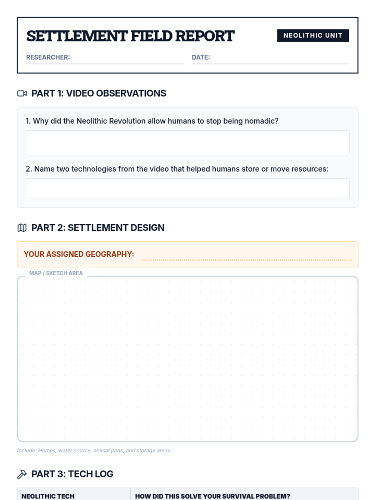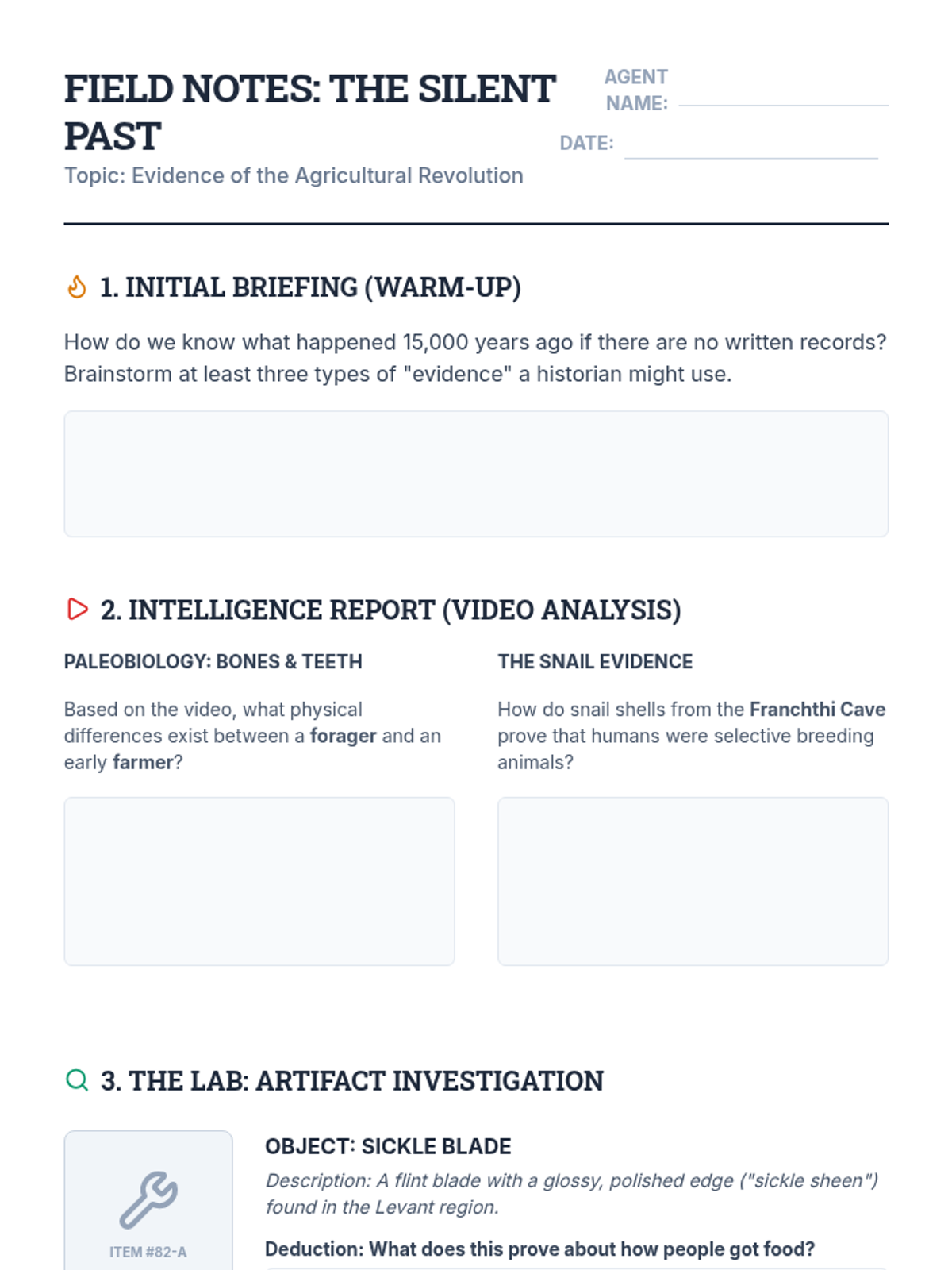 PrehistoryHuman evolution, archaeological methods, and the transition from hunter-gatherer societies to settled agricultural communities. Examines tool development, cave art, and migration patterns throughout the Paleolithic and Neolithic eras.