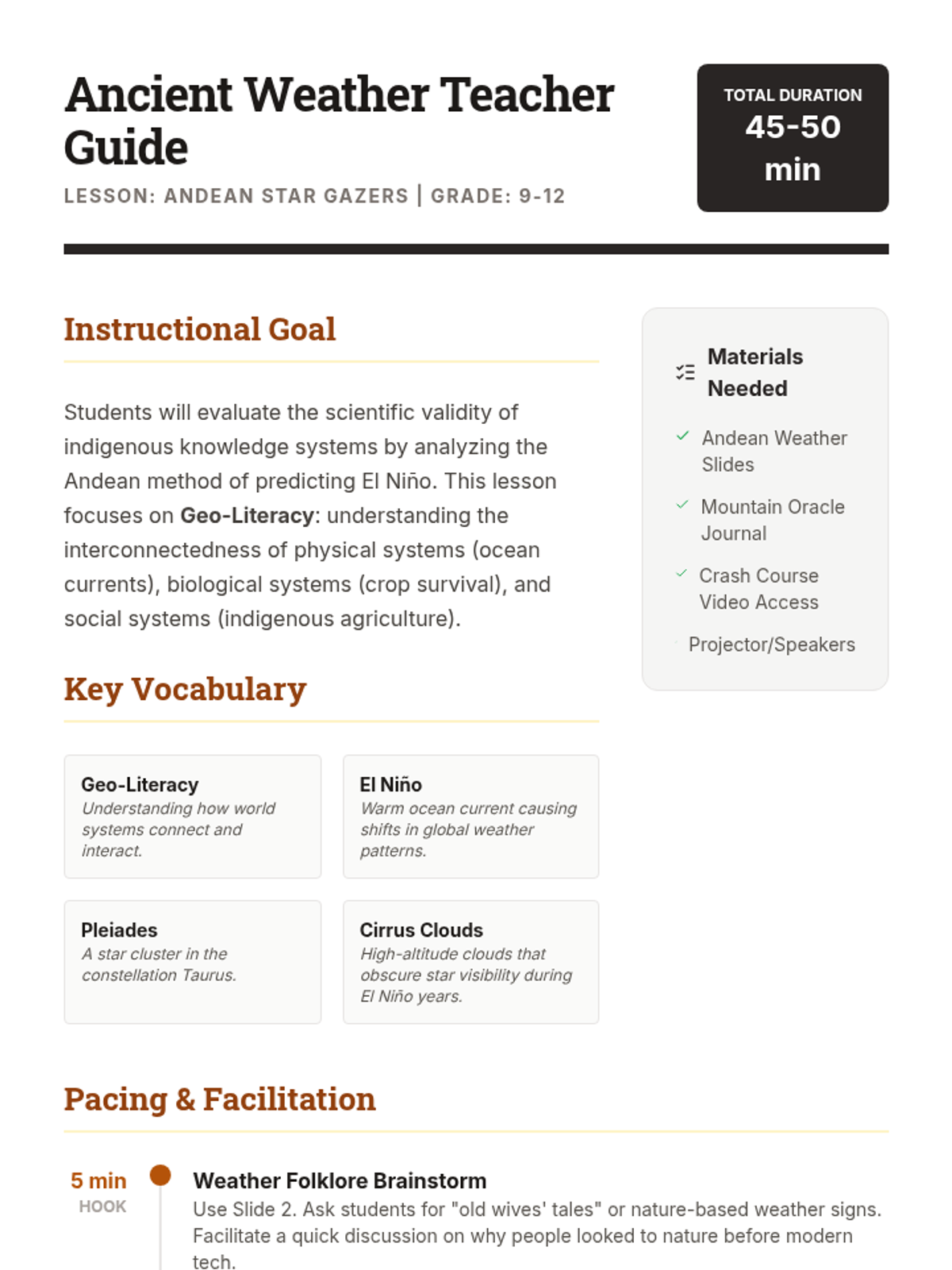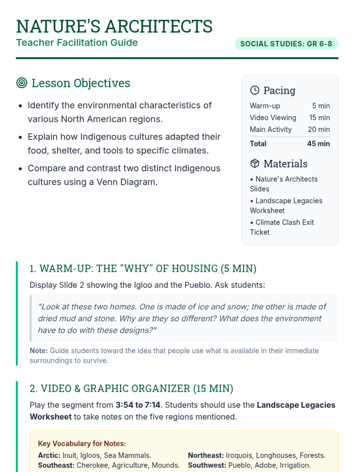 Native Peoples of Mesoamerica and South AmericaSocial structures, agricultural systems, and architectural achievements of the Maya, Aztec, and Inca civilizations. Examines cultural legacies and environmental adaptations across Mesoamerica and the Andean region.