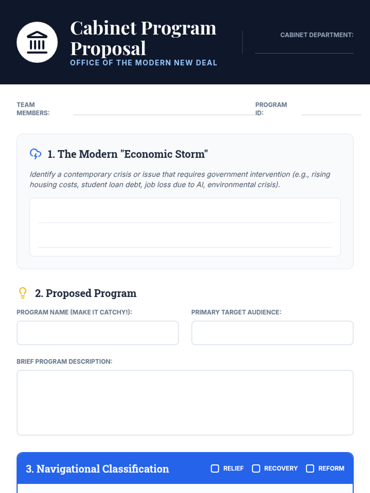 Great DepressionEconomic triggers of the 1929 stock market crash, systemic bank failures, and widespread social impacts like the Dust Bowl. Examines New Deal legislative responses and their role in reshaping the American federal government.