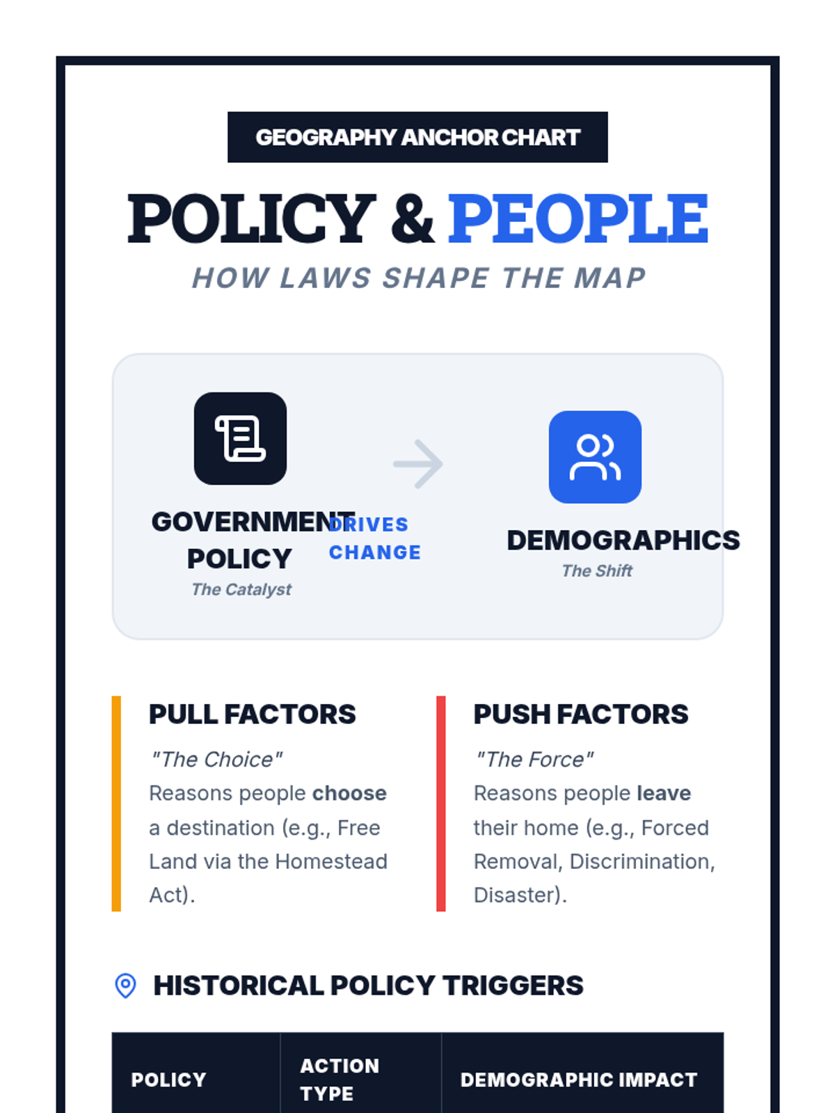 This lesson explores how U.S. government policies like the Homestead Act and Indian Removal Act directly shaped the country's population distribution through expansion and internal migration.