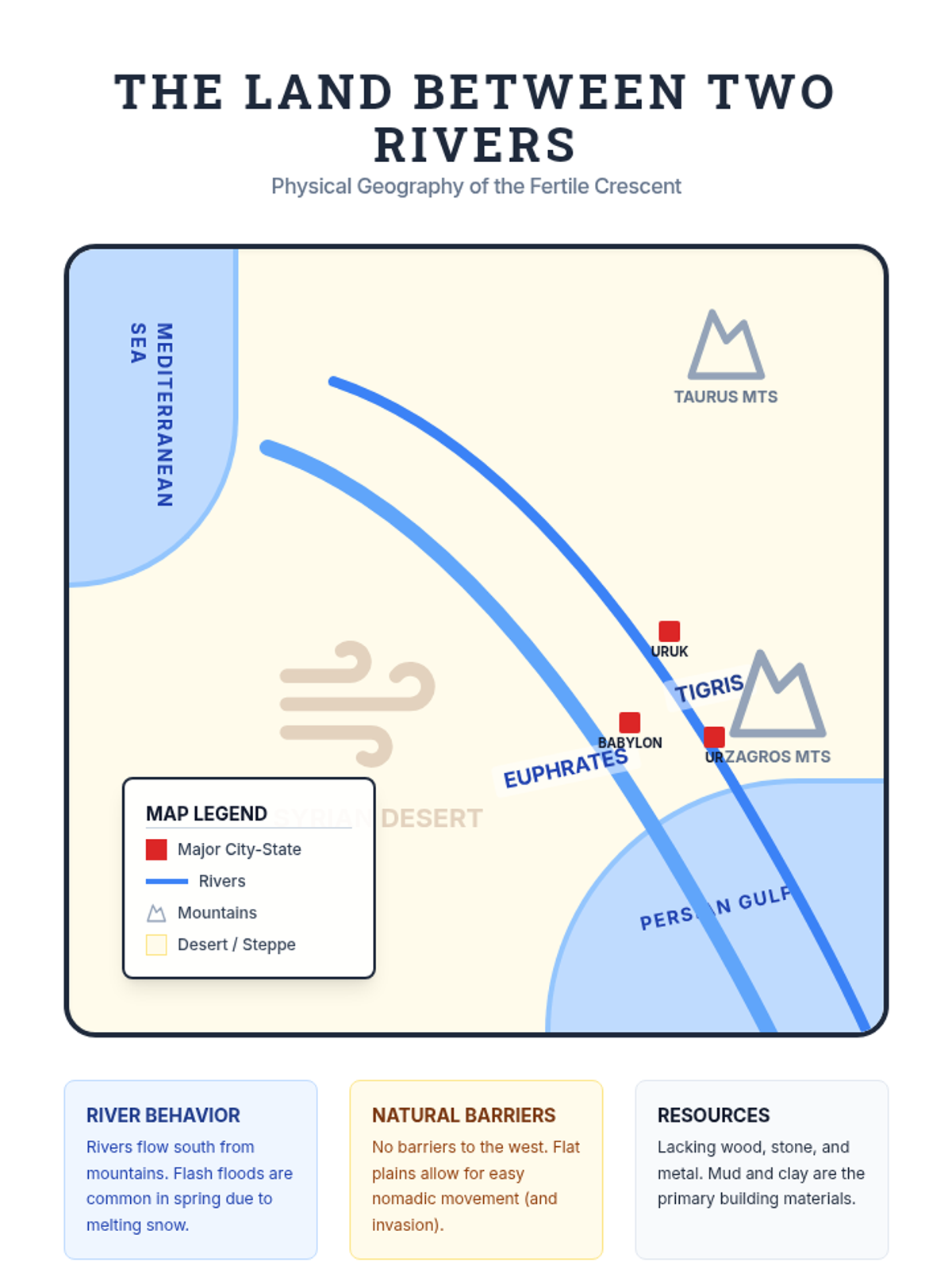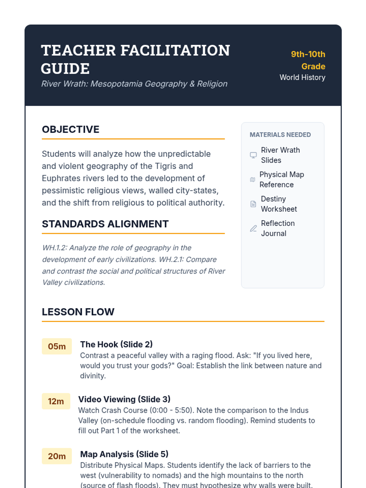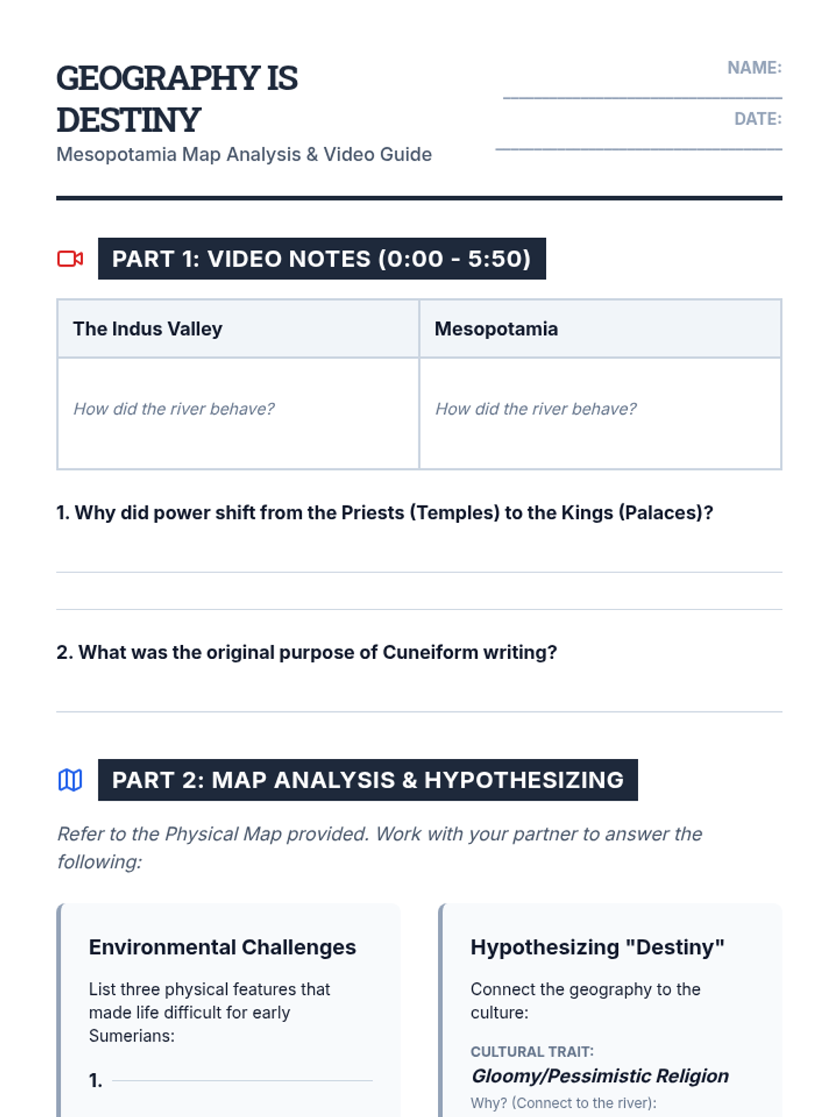 A comparative study of Ancient Egypt and Mesopotamia, exploring how the predictable flooding of the Nile versus the chaotic Tigris and Euphrates shaped diverging worldviews, religions, and social structures.