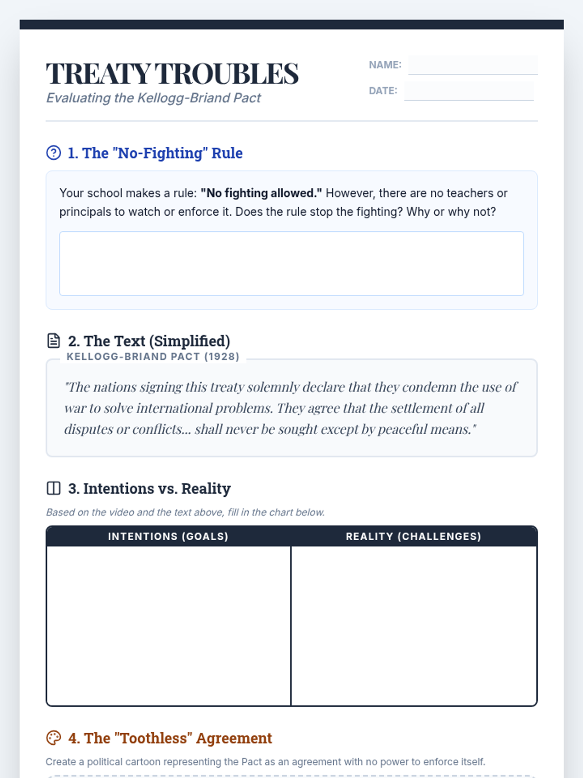 World War IGeopolitical tensions, trench warfare strategies, and the global impact of the Great War. Examines the Treaty of Versailles and the subsequent redrawing of international borders.