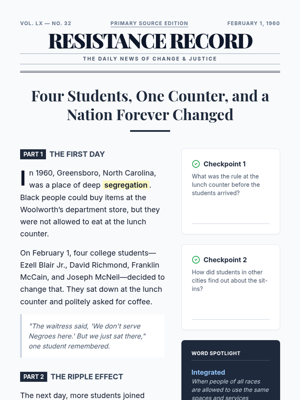 US History 1960s-70sCivil Rights activism, Vietnam War policy, and counterculture movements that defined mid-century American life. Addresses Great Society programs, the space race, and political impacts of the Watergate scandal.