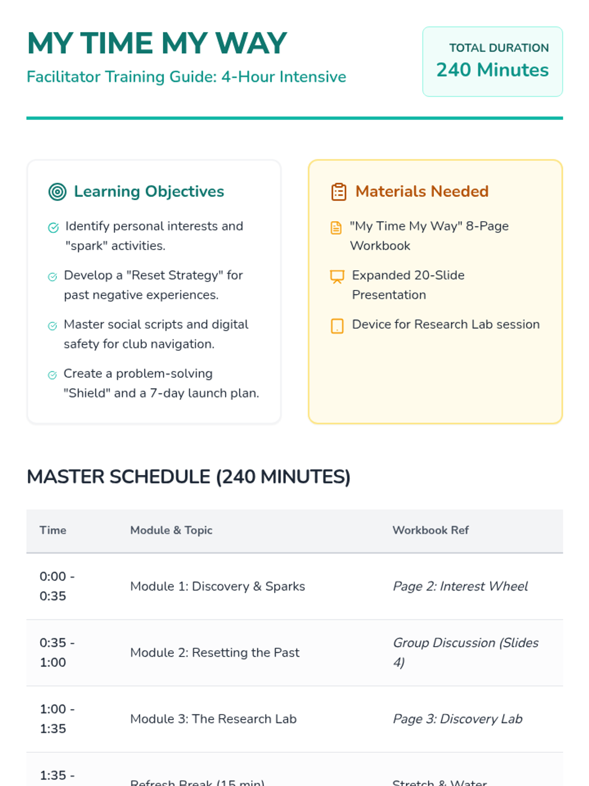 My Time My Way Facilitator Guide