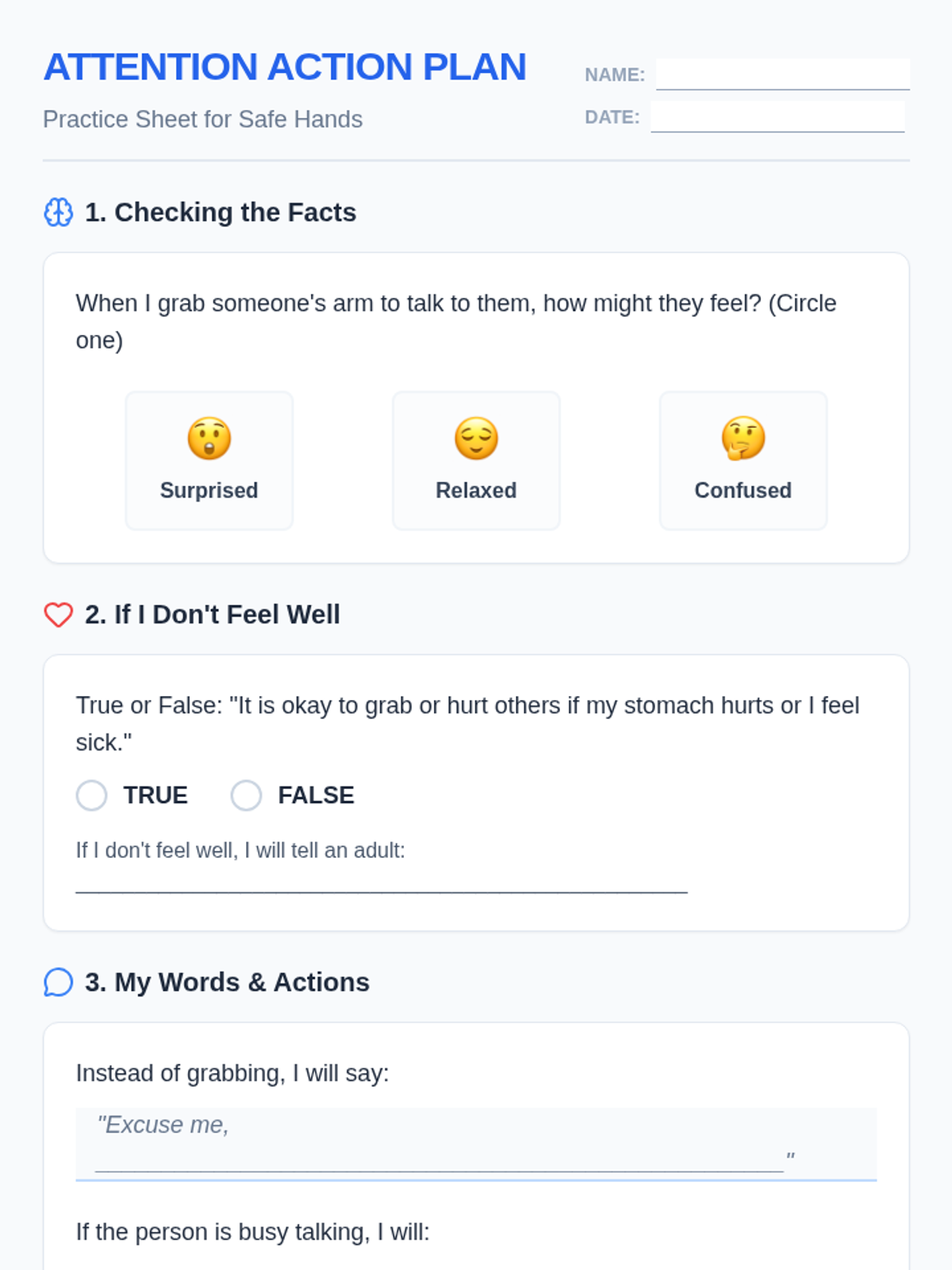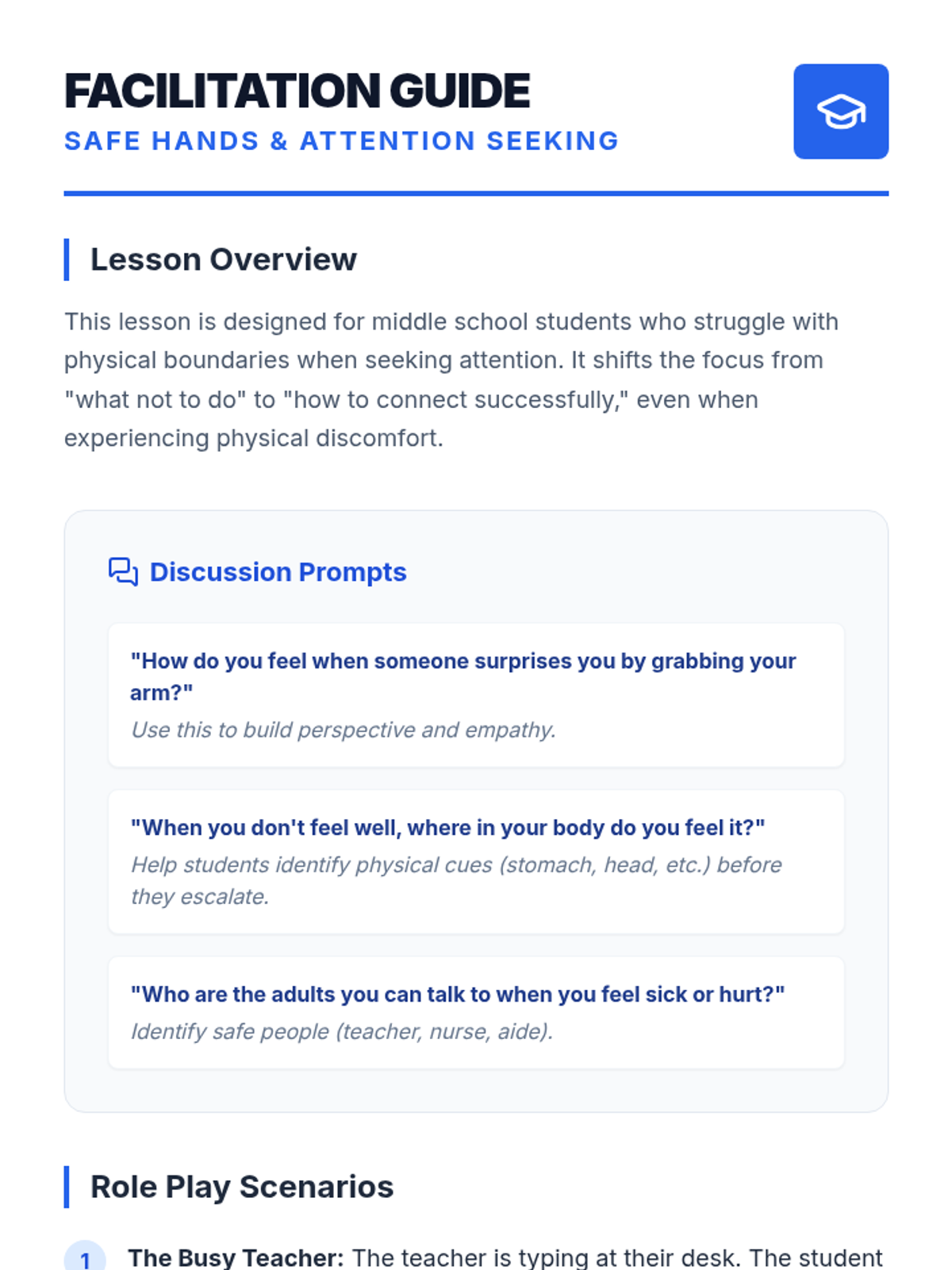 This lesson focuses on teaching middle school students with autism appropriate ways to seek attention without grabbing, emphasizing 'safe hands' and personal space. It includes a structured social story and a practical reflection tool.