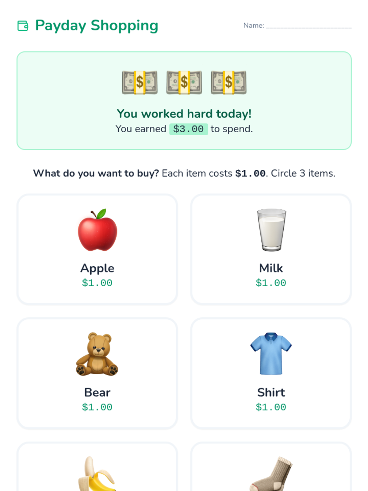 Grocery Quest Worksheet