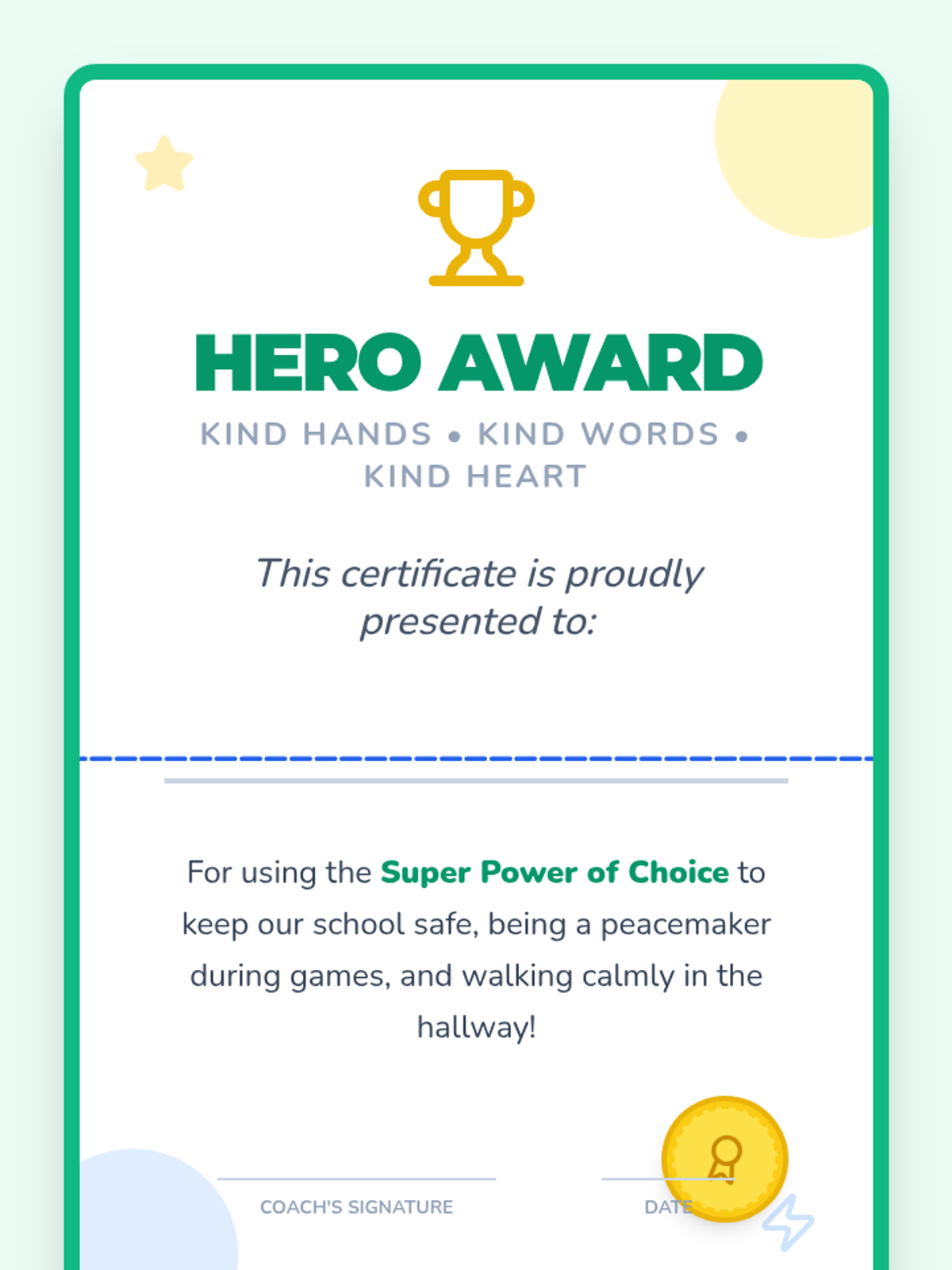 Kind Hands Hero Certificate
