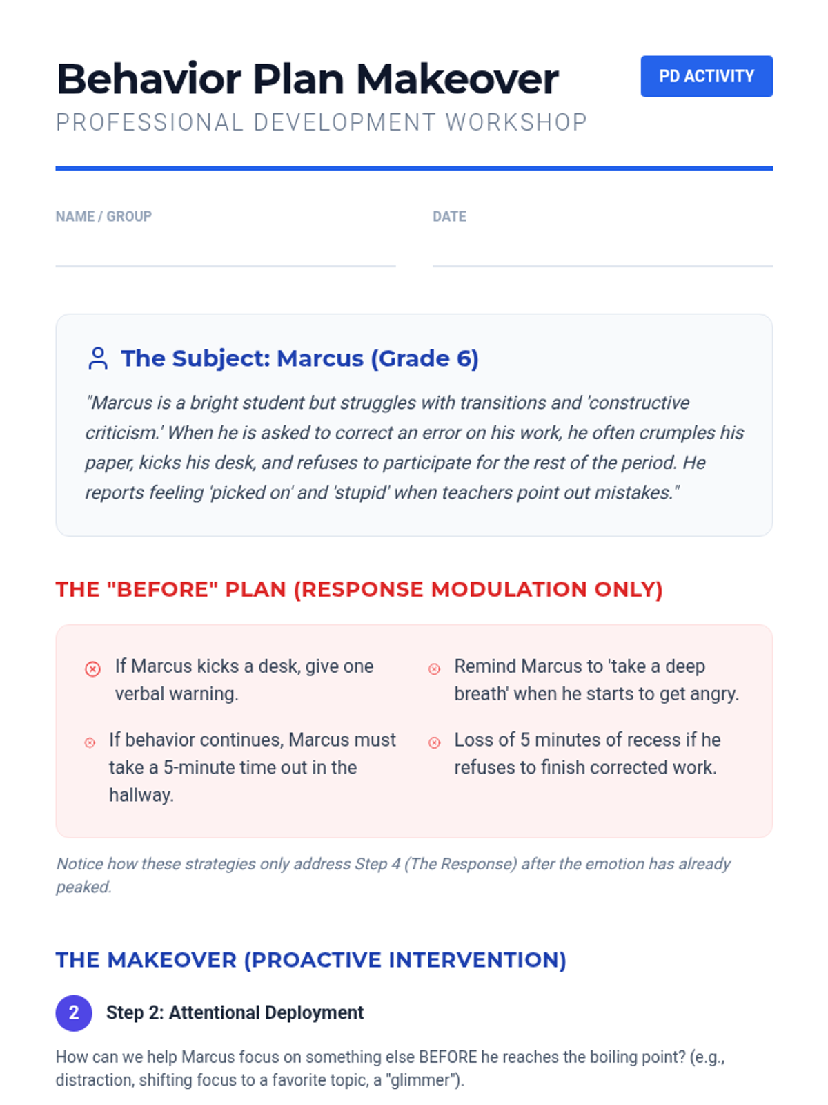 Attention Action Plan Worksheet