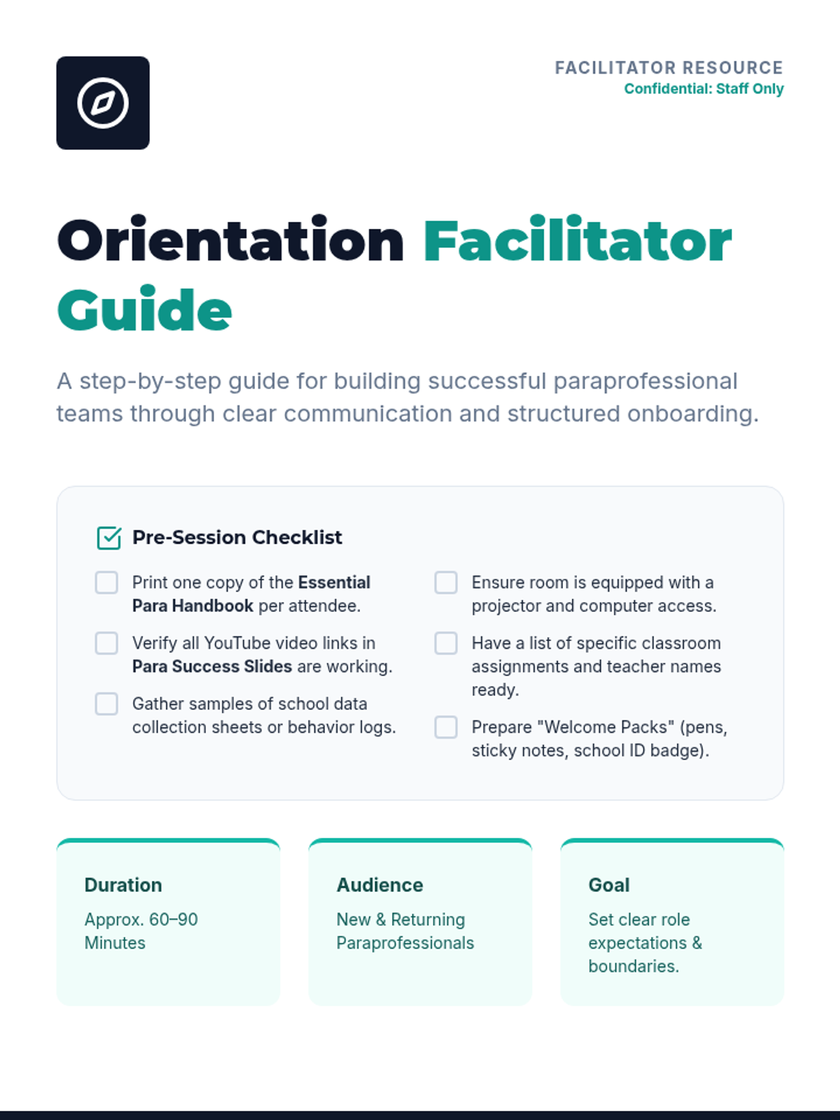 A comprehensive onboarding and training lesson designed to equip paraprofessionals with the essential skills, policies, and strategies needed to support students effectively.