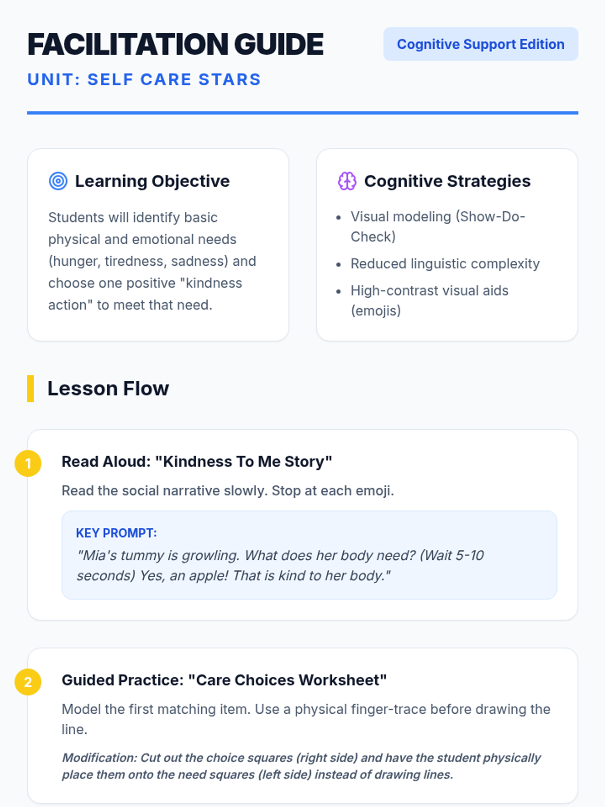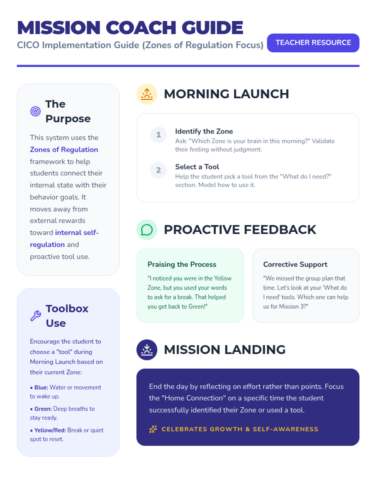 A comprehensive behavioral intervention kit designed for 2nd grade students to improve self-regulation, interpersonal skills, and decision-making during school transitions and peer interactions.