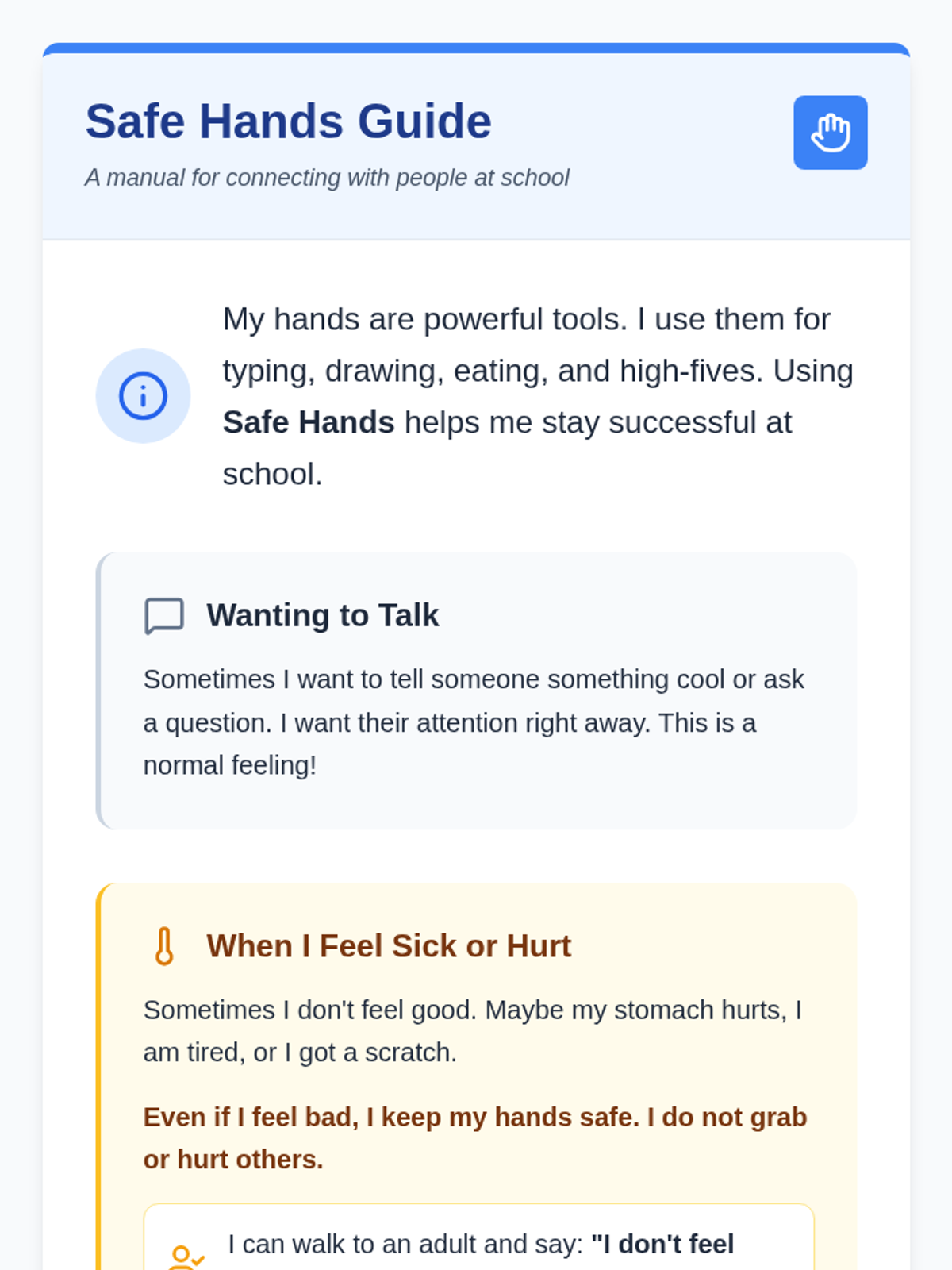 Safe Hands Social Story