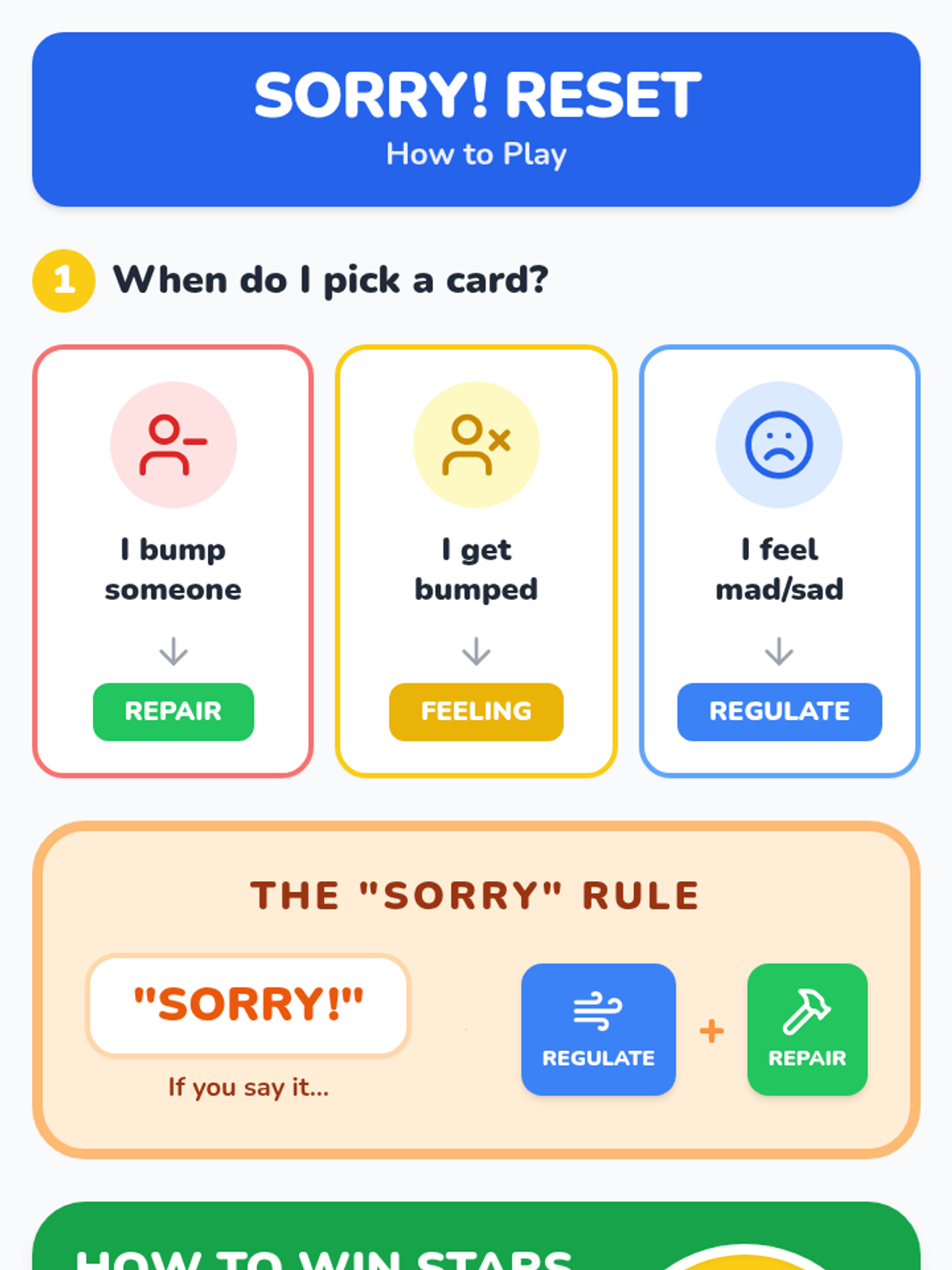 A therapeutic overlay for the classic board game Sorry!, designed to help 4th-grade students with ADHD practice emotional regulation, impulse control, and behavior repair through active gameplay.