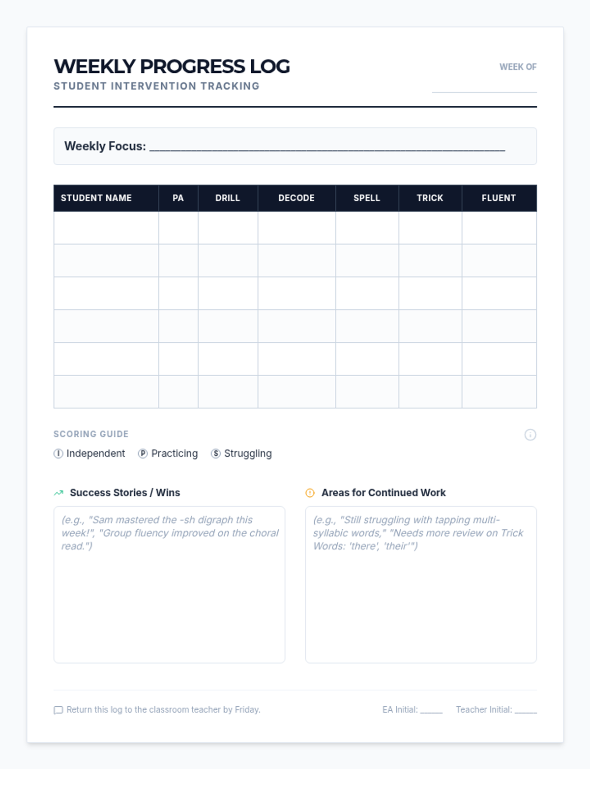 A comprehensive set of templates and guides for educational assistants to lead Science of Reading-aligned intervention groups for 2nd and 3rd graders.