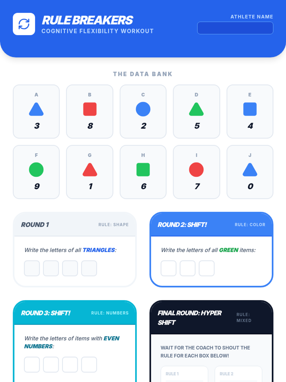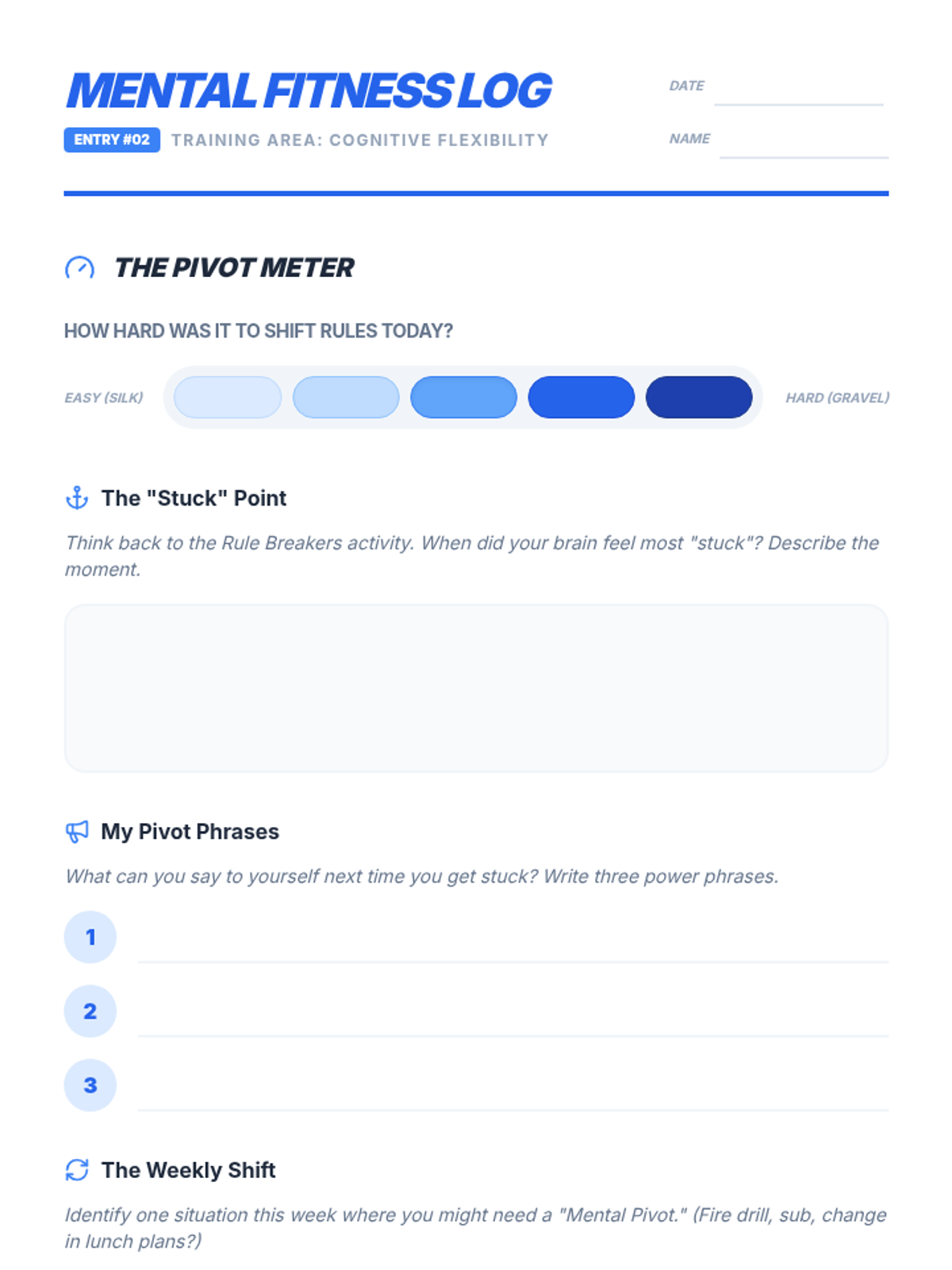 Teaches students how to adapt to new rules or situations and shift their perspective when solving problems.