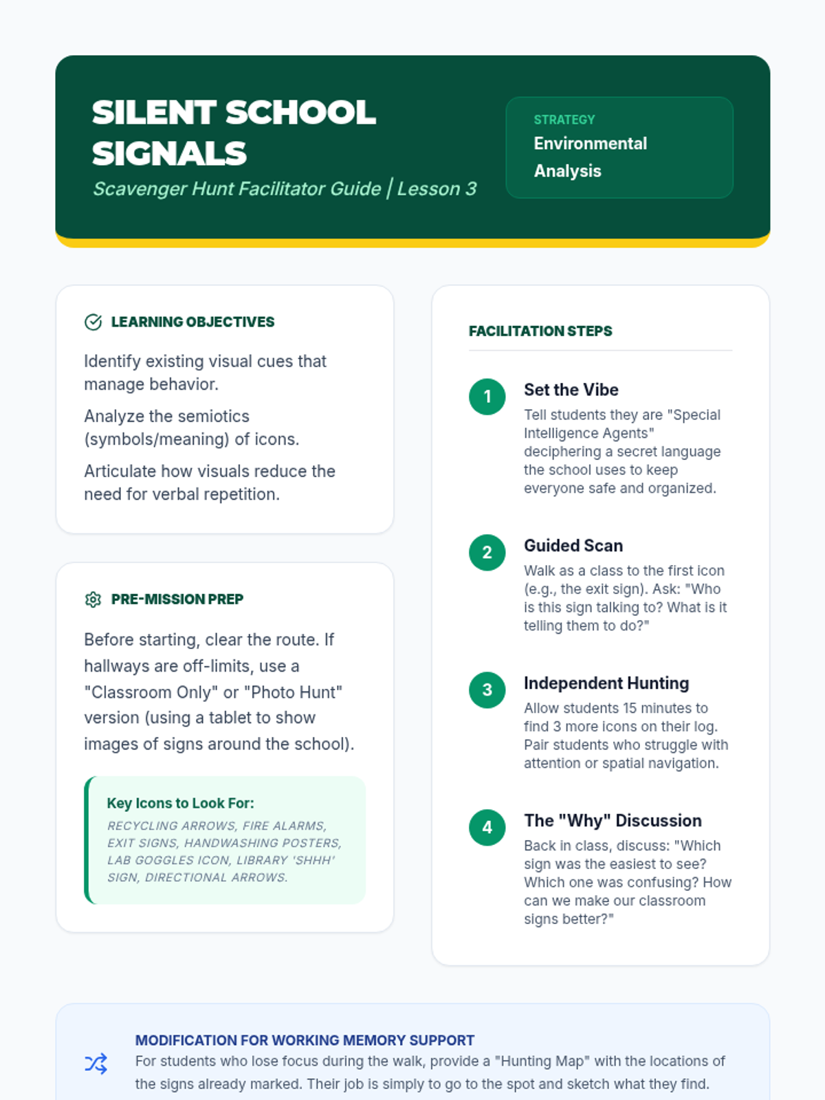 An inquiry-based exploration of environmental visual cues, helping students understand how icons and signs reduce cognitive load in the real world.