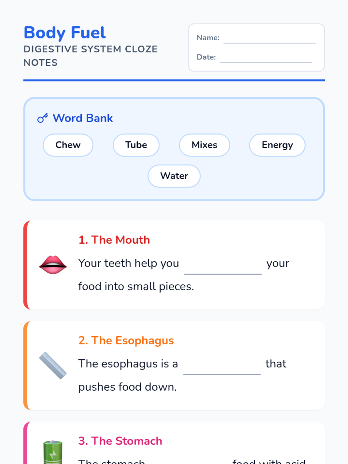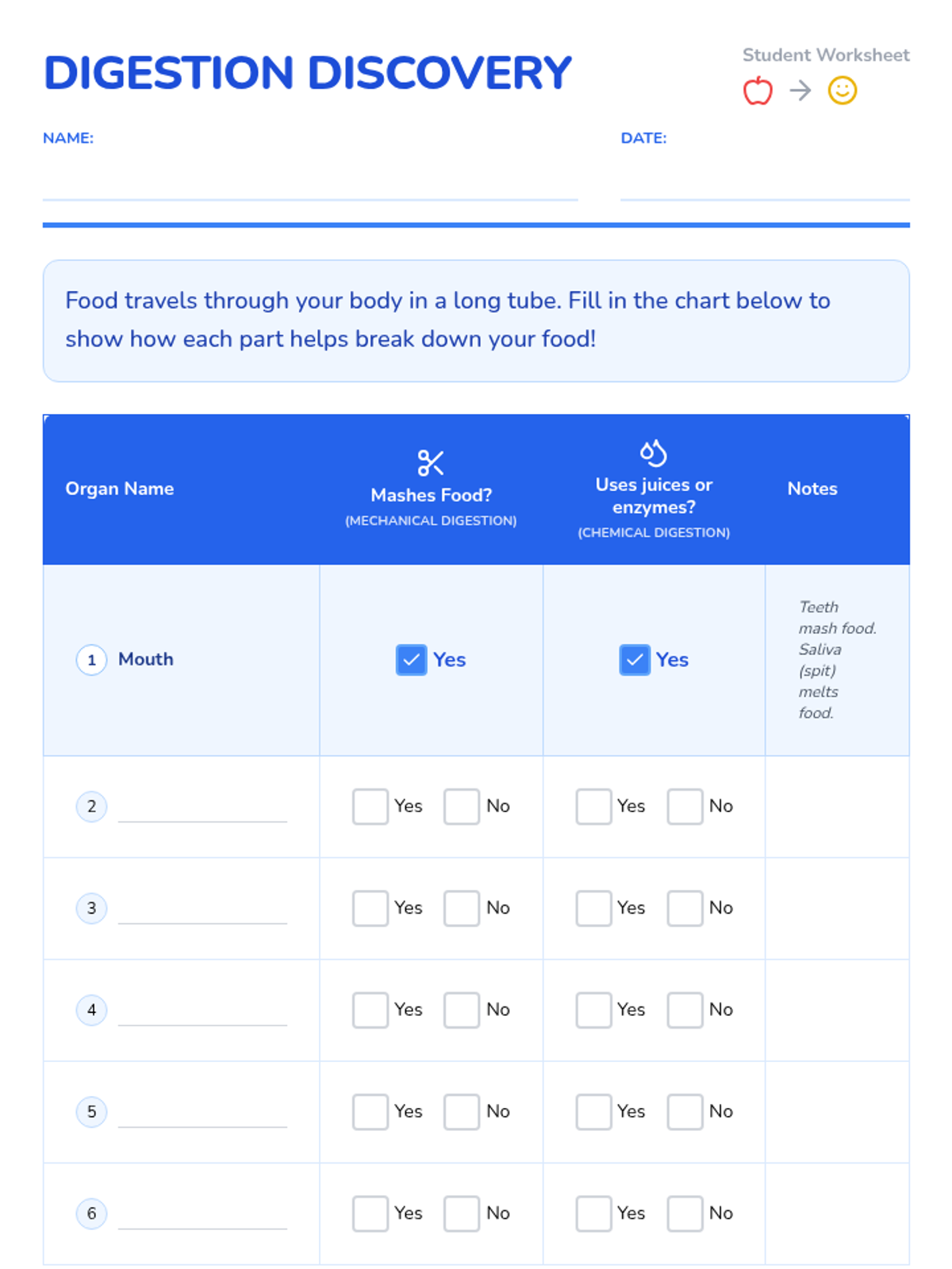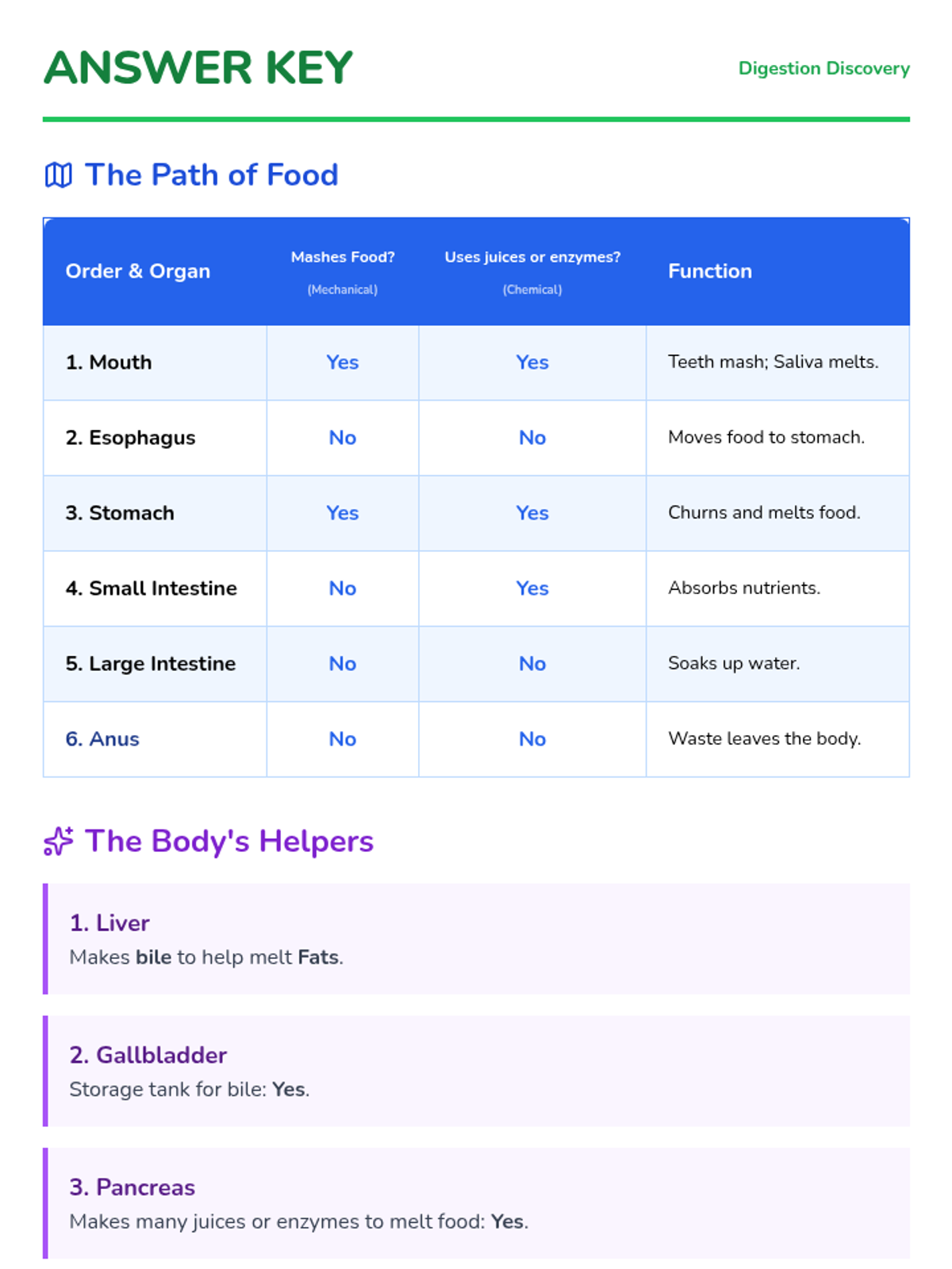 A modified lesson on the digestive system designed for students with intellectual disabilities, focusing on simple functions and clear visual supports.