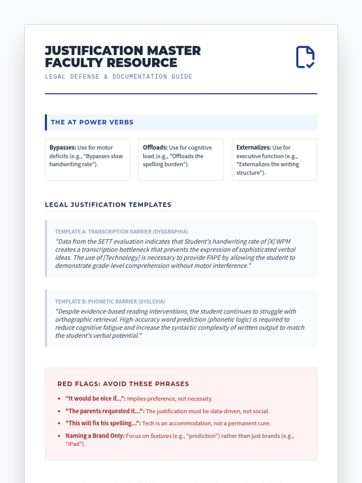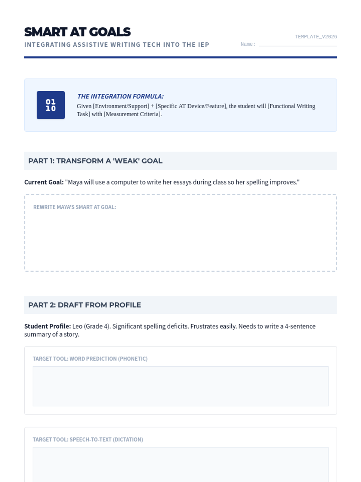 Master the legal and administrative requirements for documenting AT in the IEP. Draft SMART goals and data-driven justification statements for assistive devices.