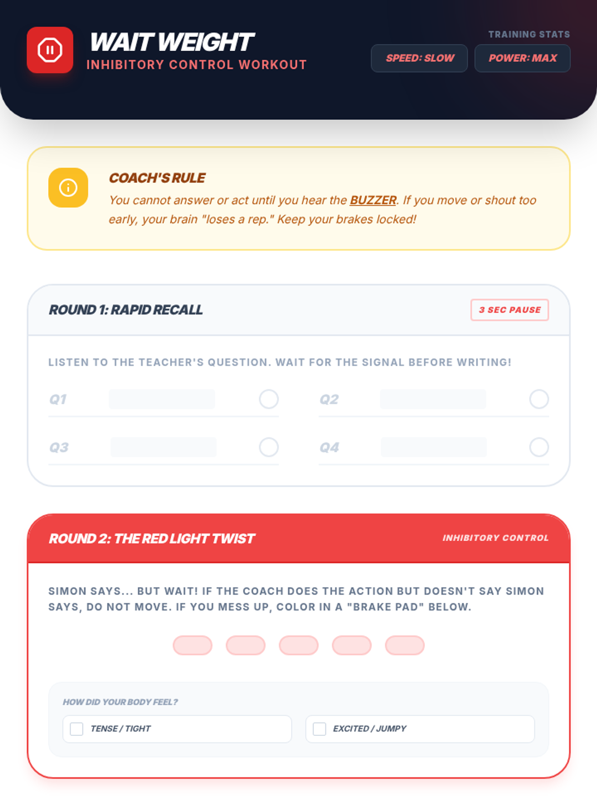 Helps students develop the ability to pause and think before acting, using 'stop-and-think' strategies.