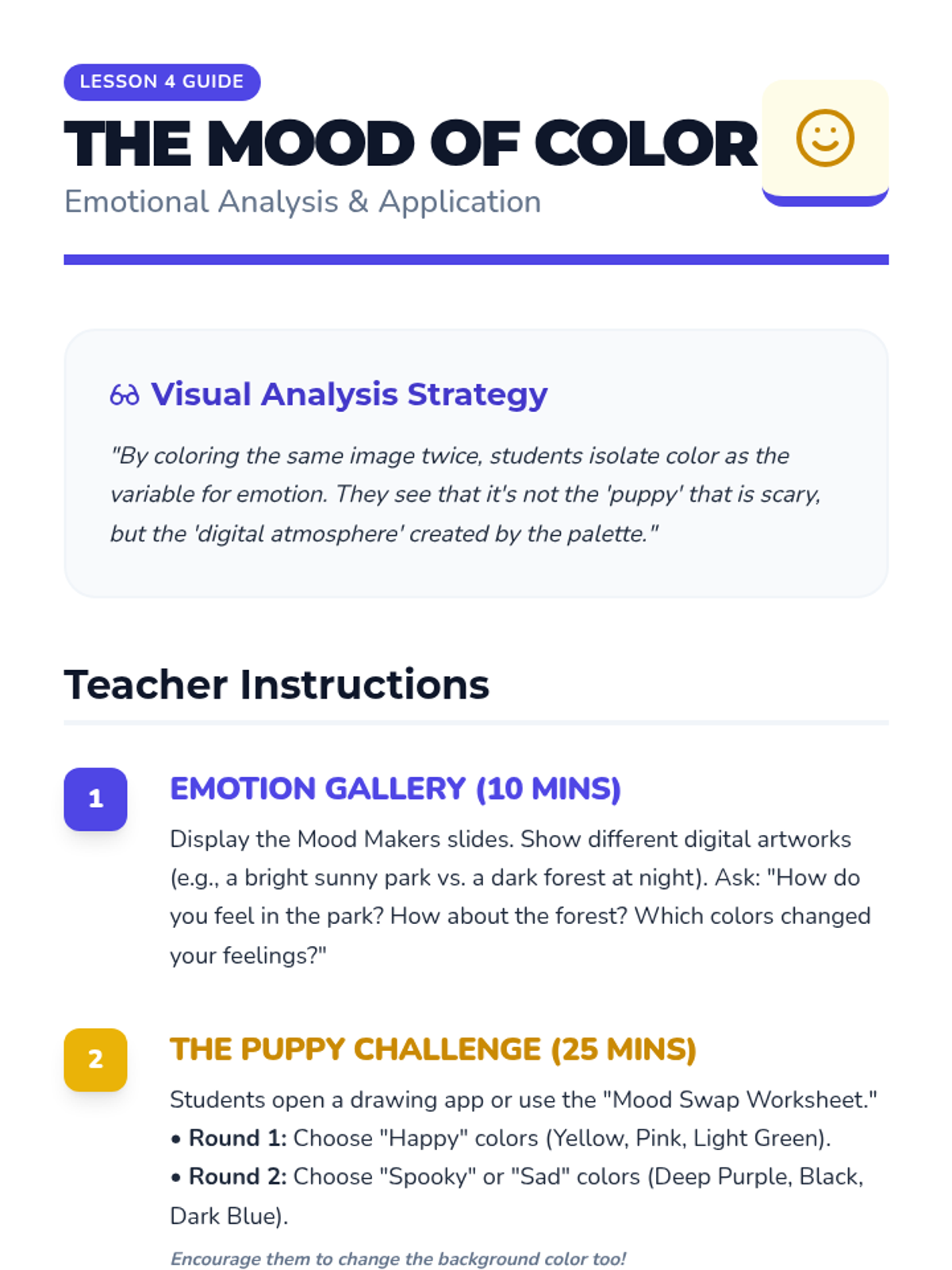 Students analyze how color affects mood and practice using color to change the feeling of an image.