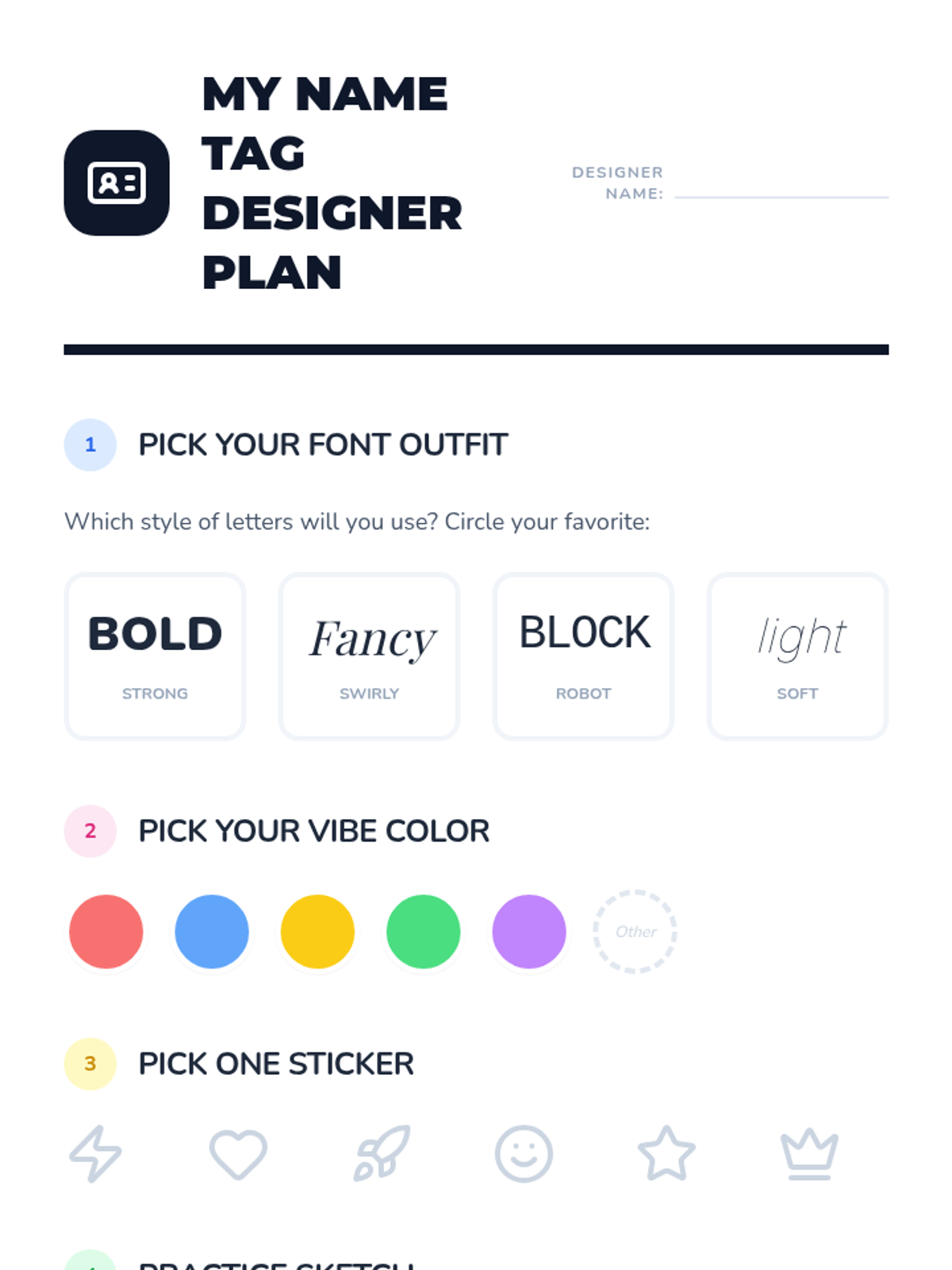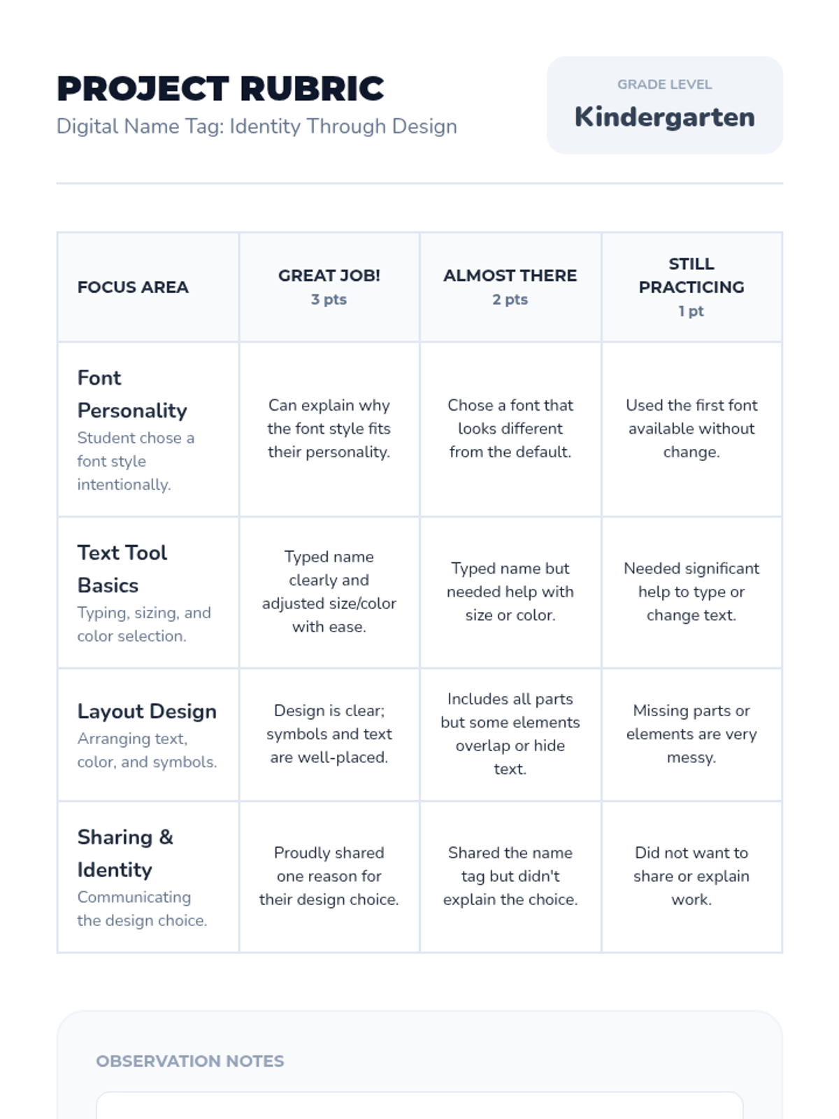 The capstone project where students apply their learning to create a personalized digital name tag. They select a font, color, and decorative elements that reflect their personality.