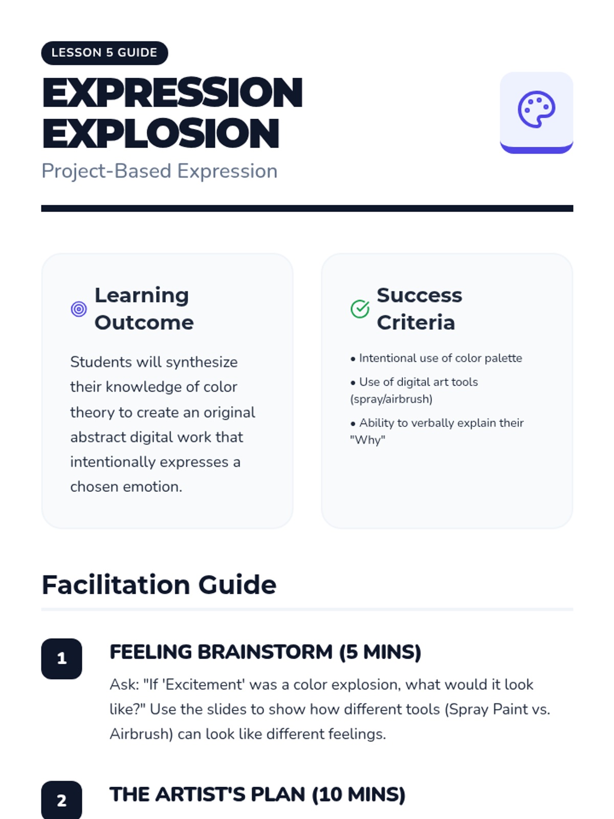 A collaborative finale where students combine techniques to create a large-scale mural. Emphasis is on teamwork, layering, and spatial awareness.