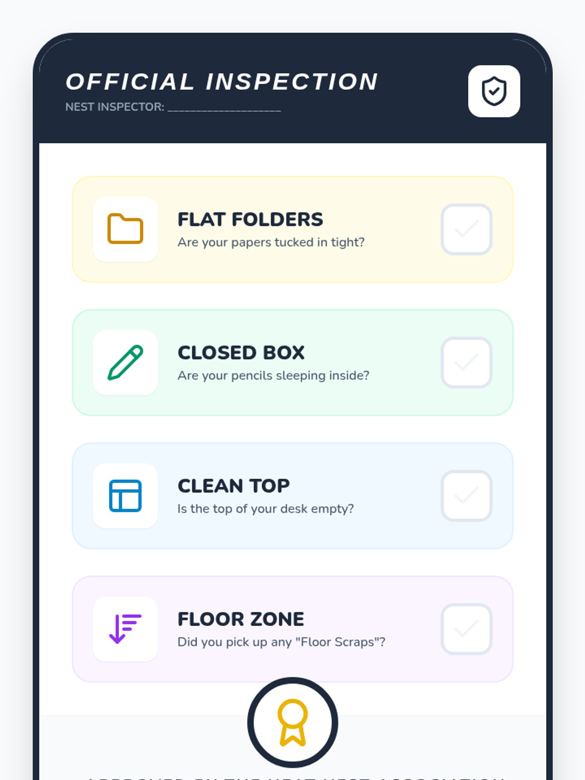 Introduces a quick daily routine for tidying personal spaces. Students practice efficiency and speed through a gamified challenge.