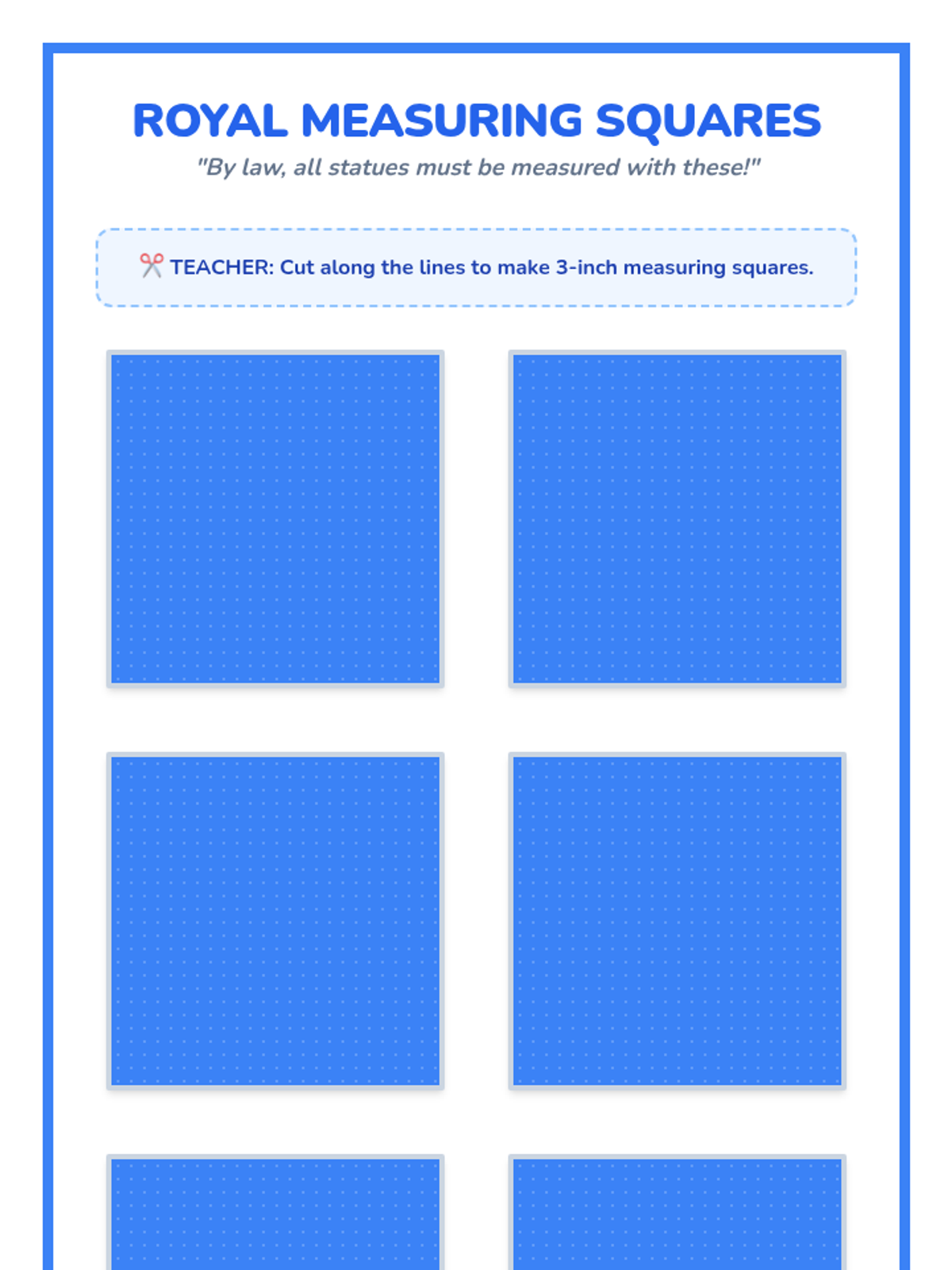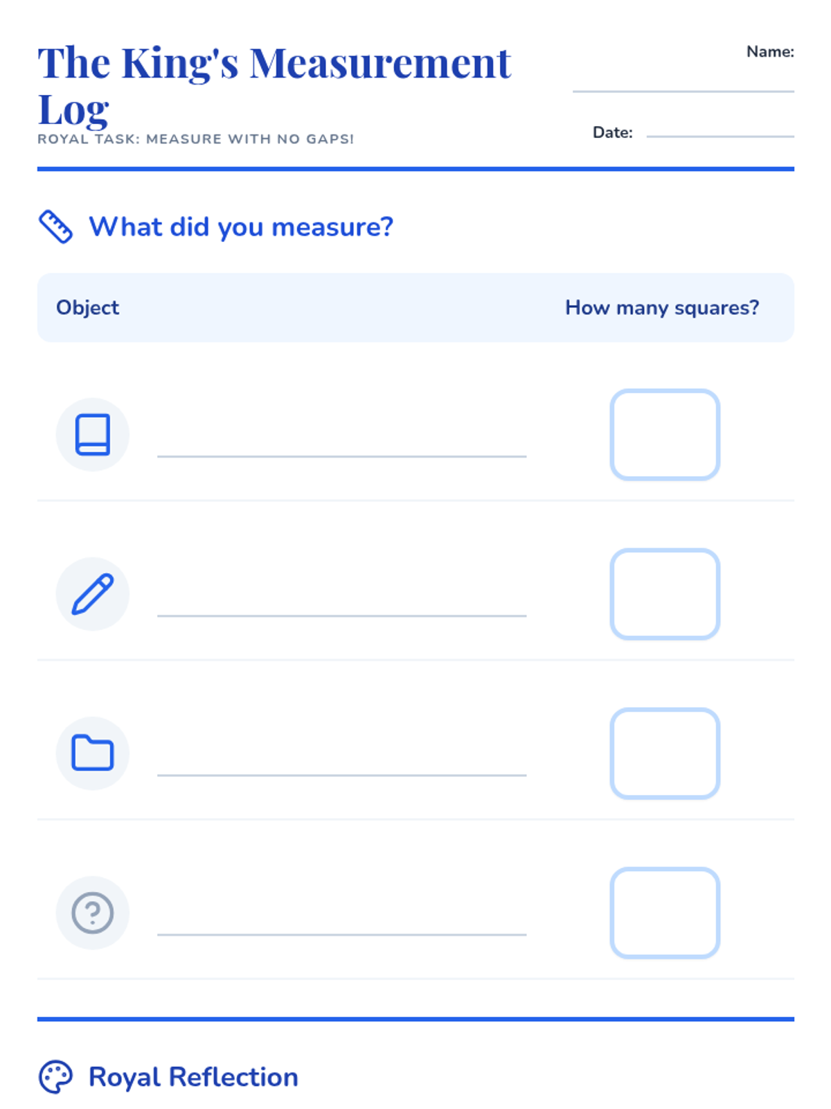 Students learn non-standard measurement techniques and explore how unit size impacts measurement counts through a royal-themed challenge.