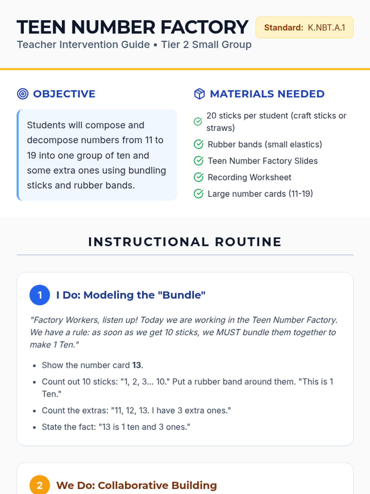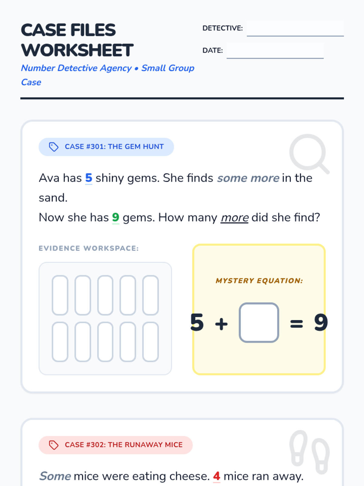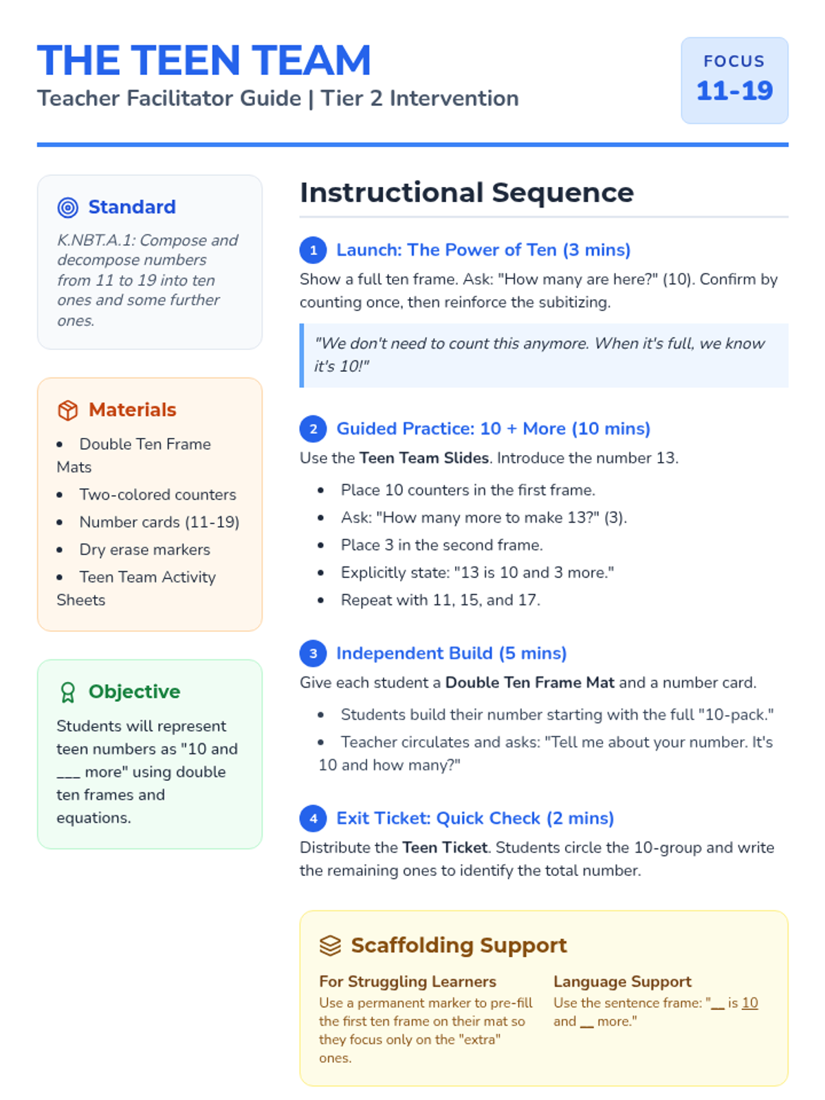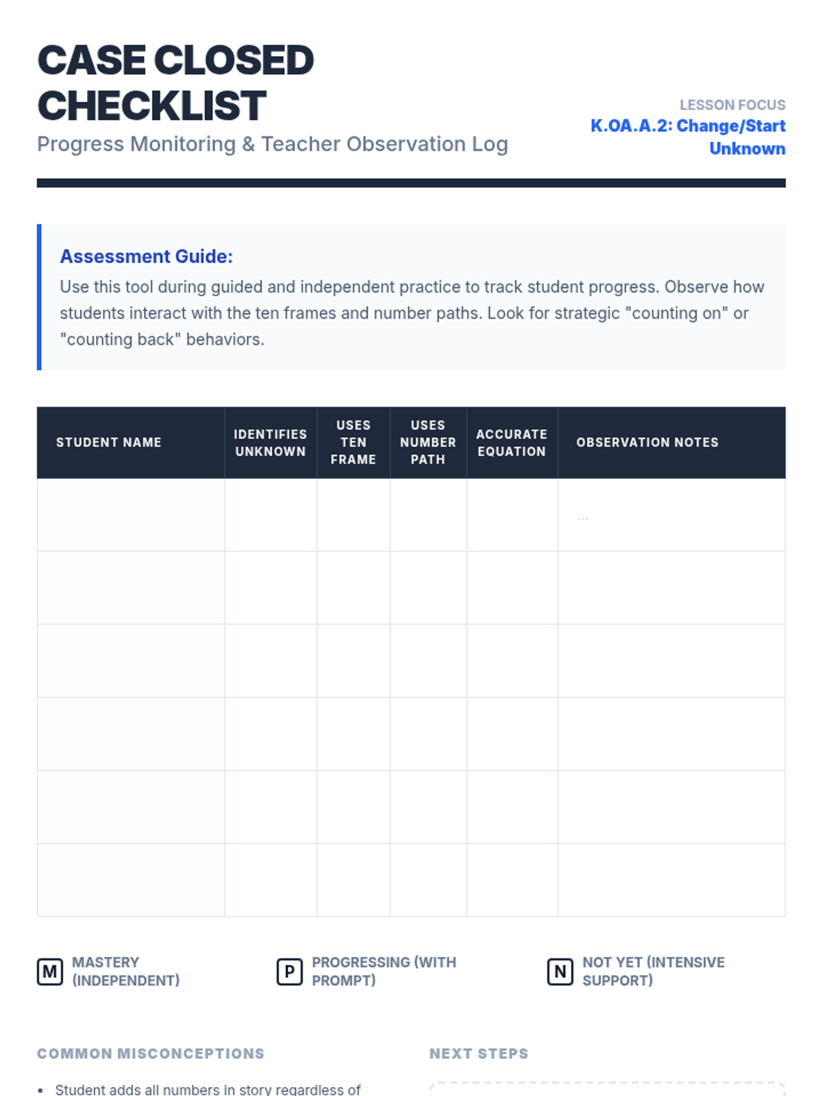 A targeted Tier 2 intervention lesson focusing on change-unknown and start-unknown word problems within 10 for Kindergarten students. This lesson utilizes ten frames and number paths as primary scaffolds to build conceptual understanding and problem-solving strategies.