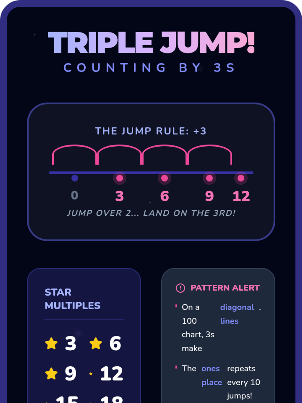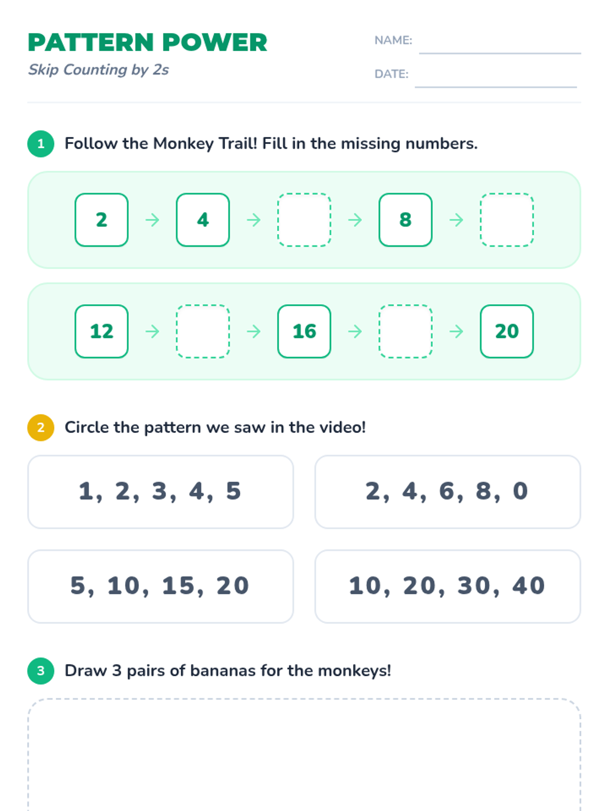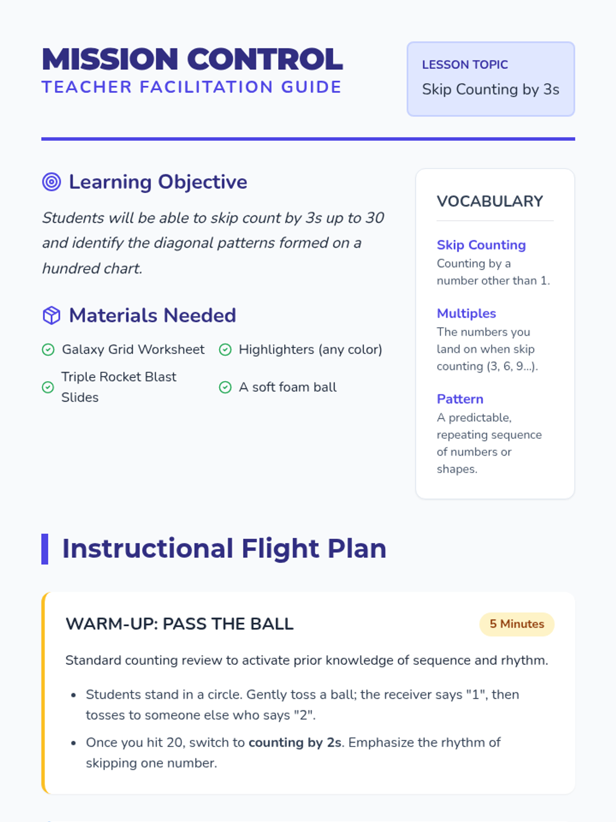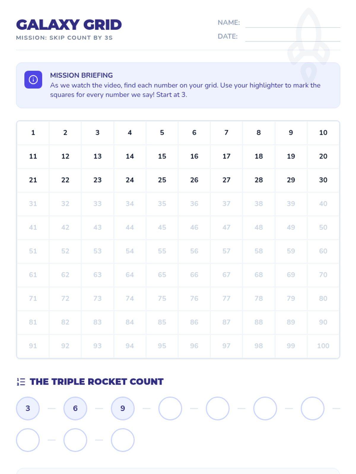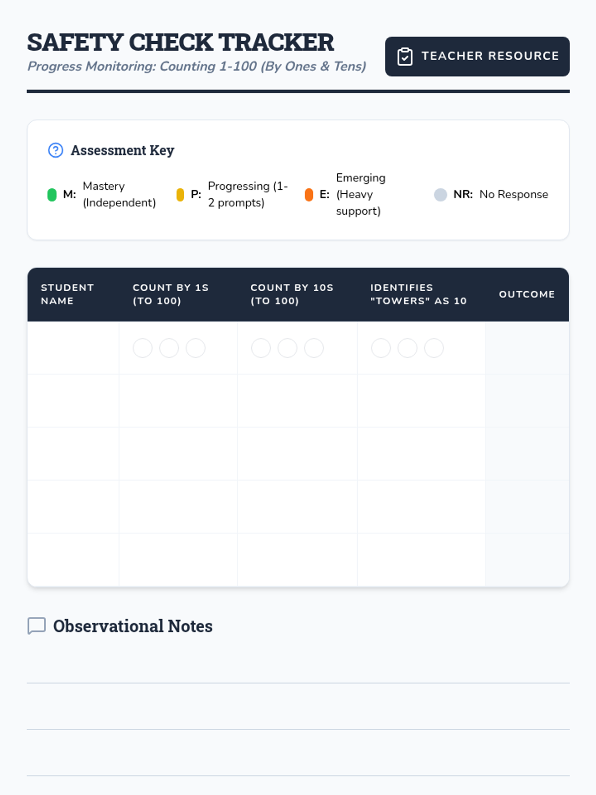 Counting SequenceSequential number naming and cardinal counting principles for early learners. Develops fluency in forward and backward sequences while introducing skip-counting patterns.