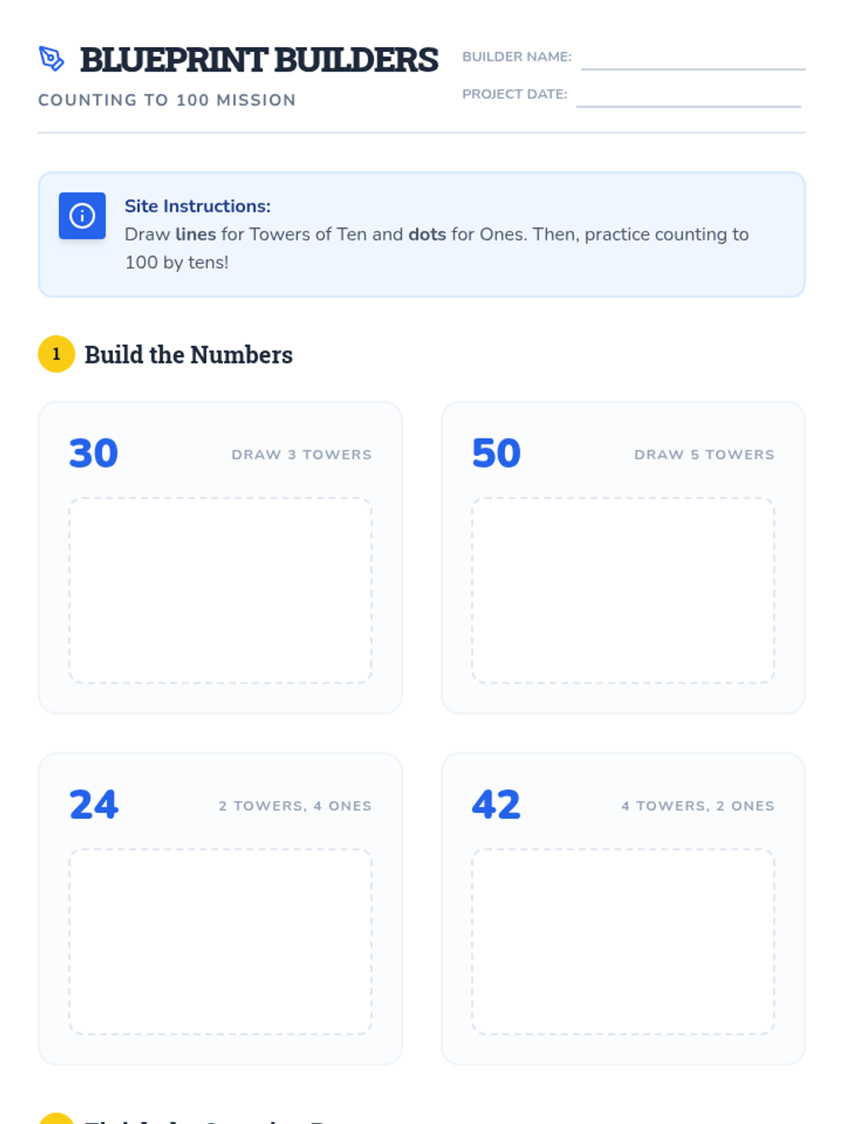 A culminating celebration where students demonstrate their mastery of counting to 100 by ones and tens through games, challenges, and a final quest.