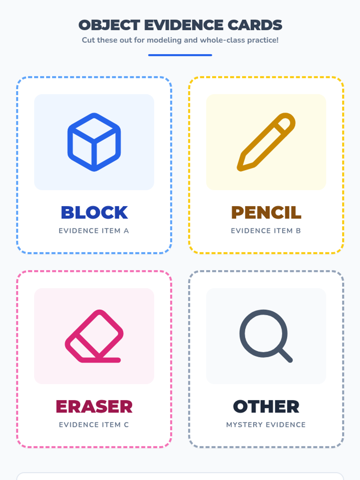 Students explore mixed collections to identify and describe physical attributes like color, shape, and size using descriptive vocabulary.