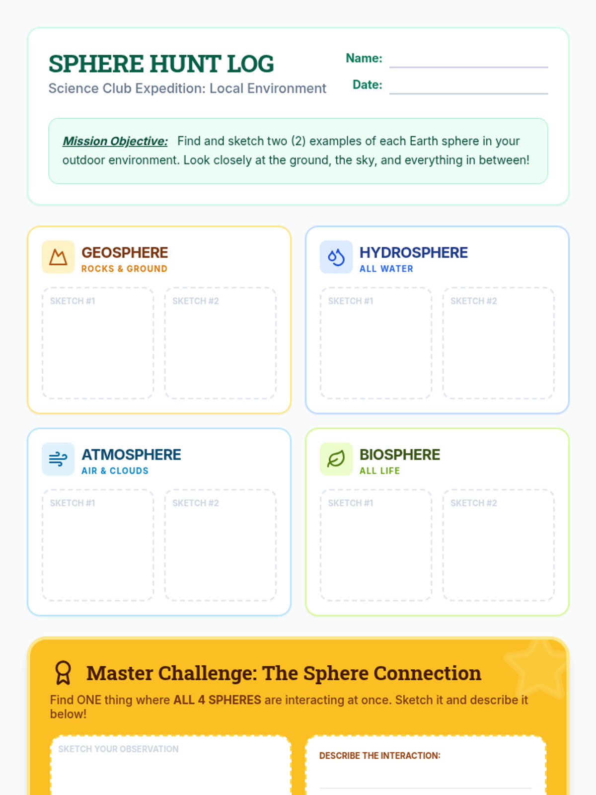 Geological processes including plate tectonics, rock formation, and Earth's structure alongside atmospheric weather systems and fossil records. Examines human environmental impacts, resource management, and celestial bodies within the field of astronomy.