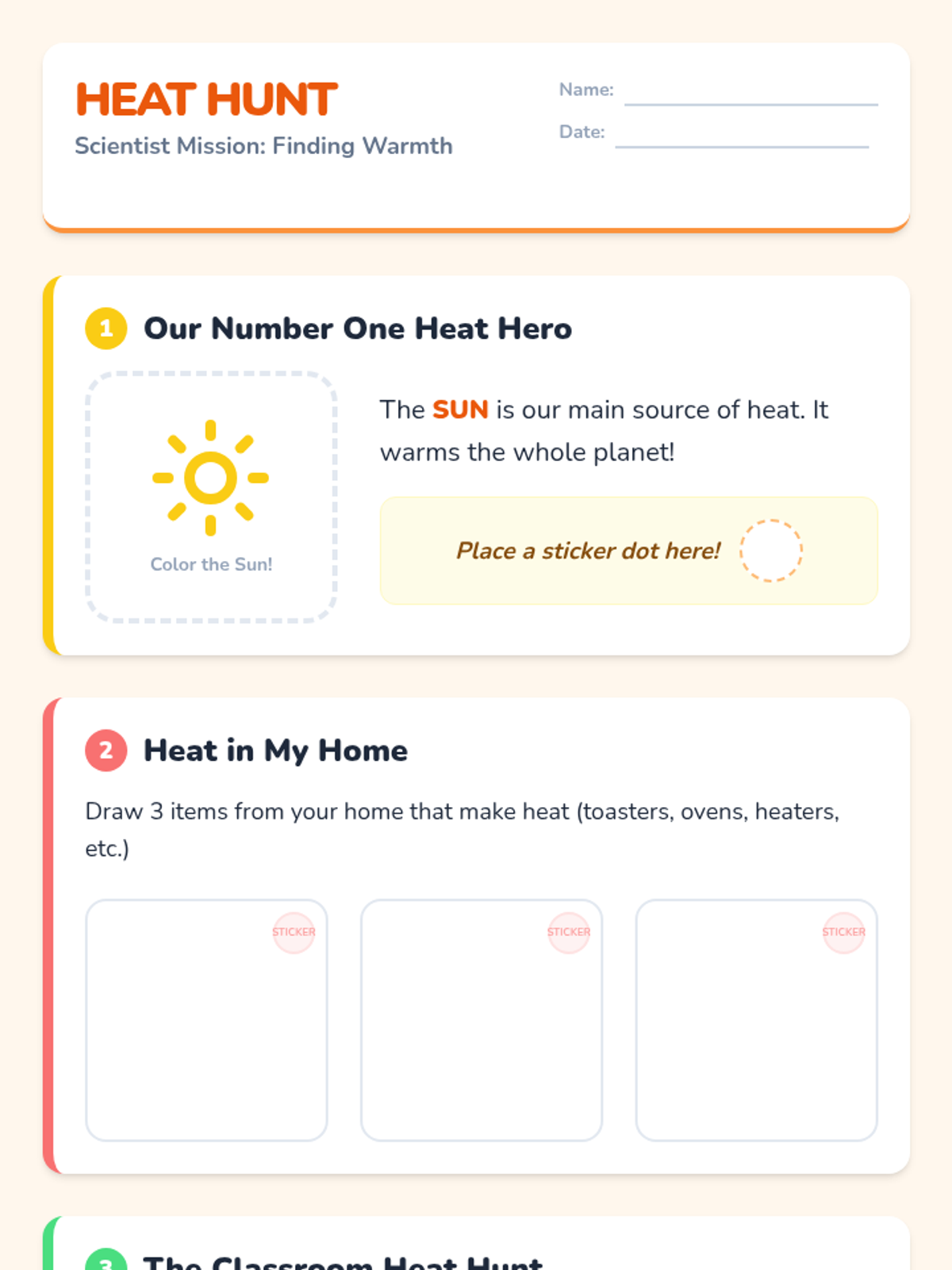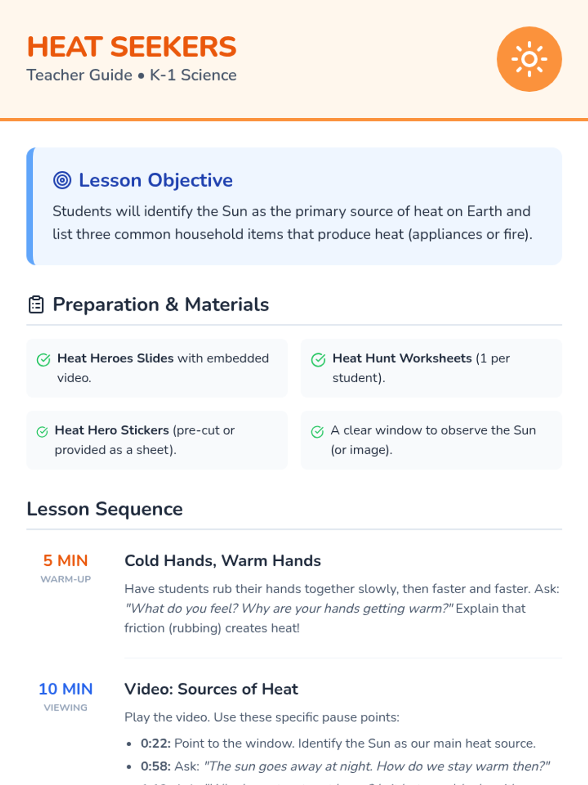A sunny and interactive lesson for K-1 students to discover that the Sun is our main source of heat and identify common household appliances that keep us warm.