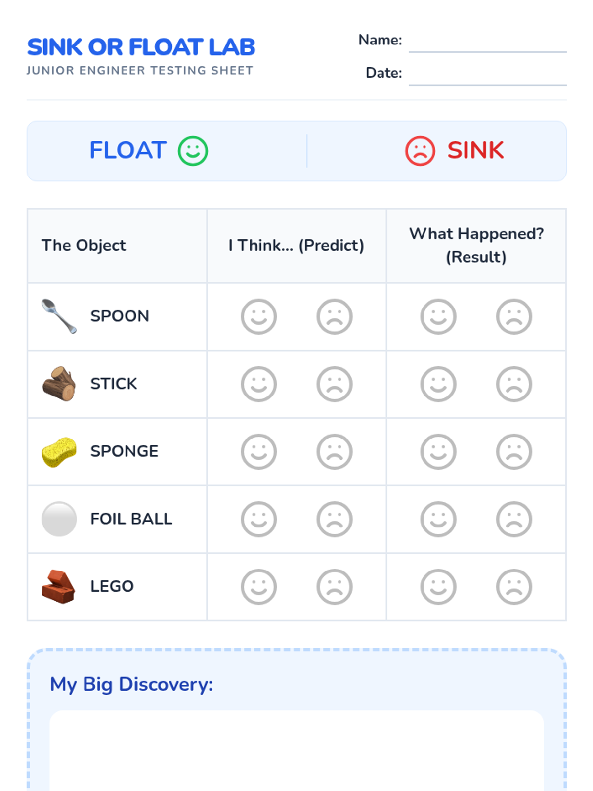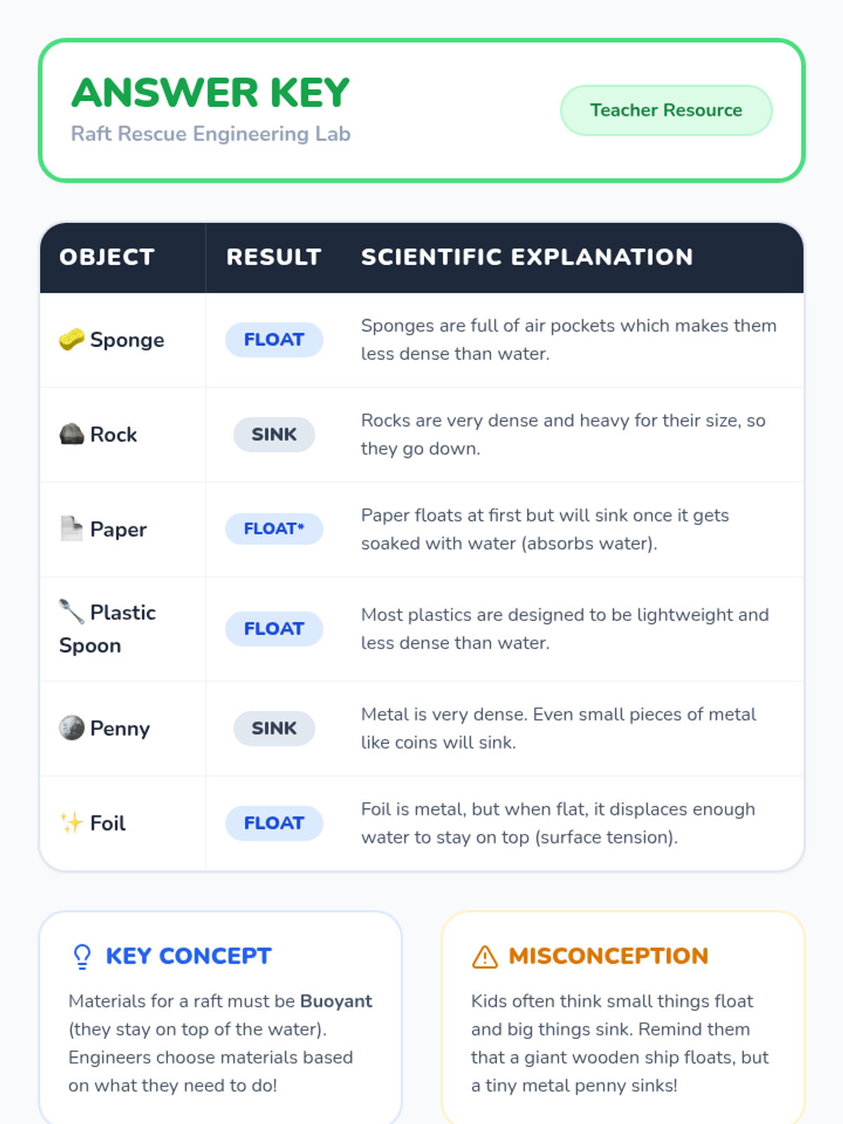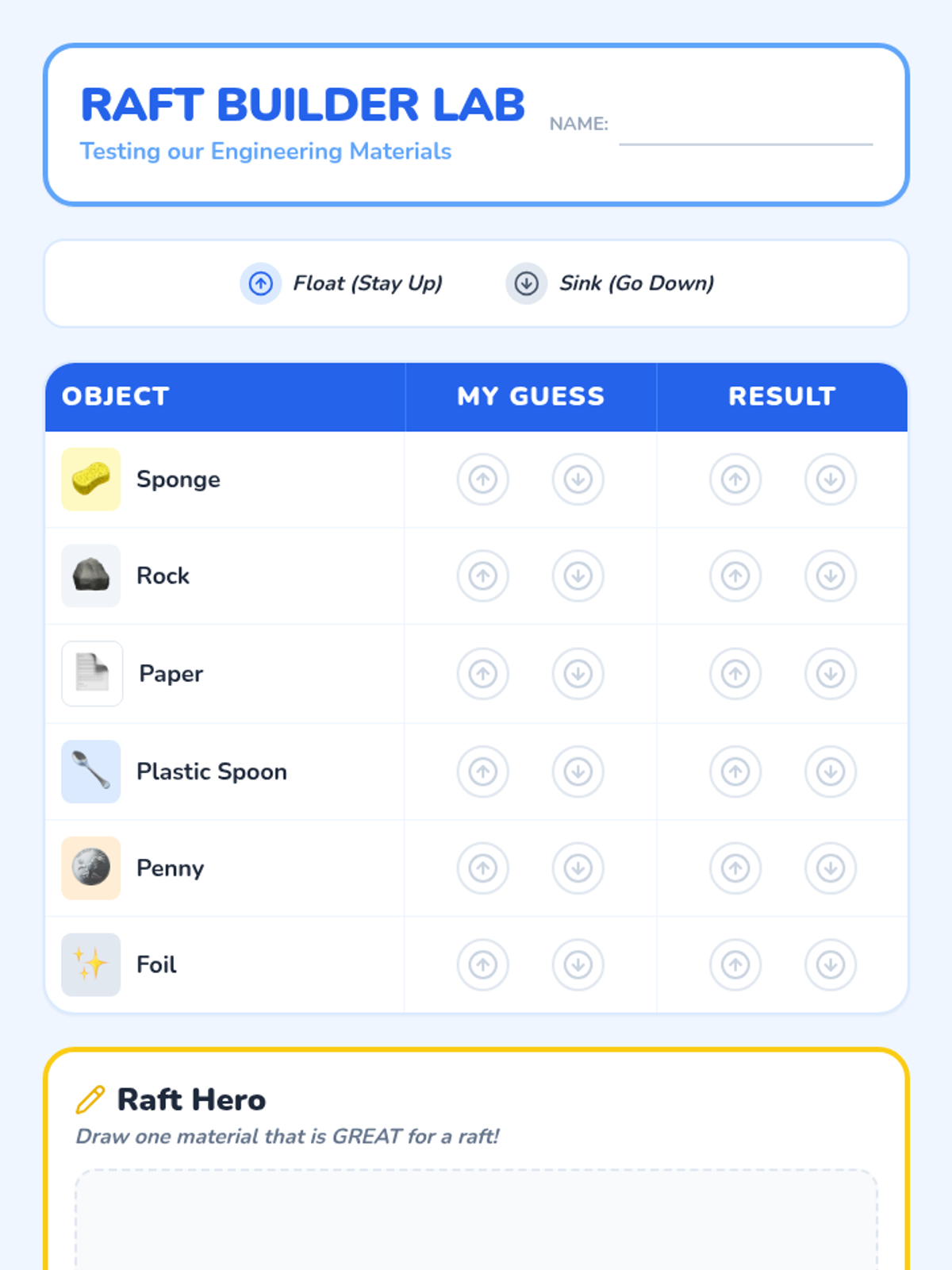 A hands-on engineering lesson for K-1 students focusing on the concept of prototypes and material properties like buoyancy and absorbency. Students test objects, watch a video about iteration, and design their own floating solutions.