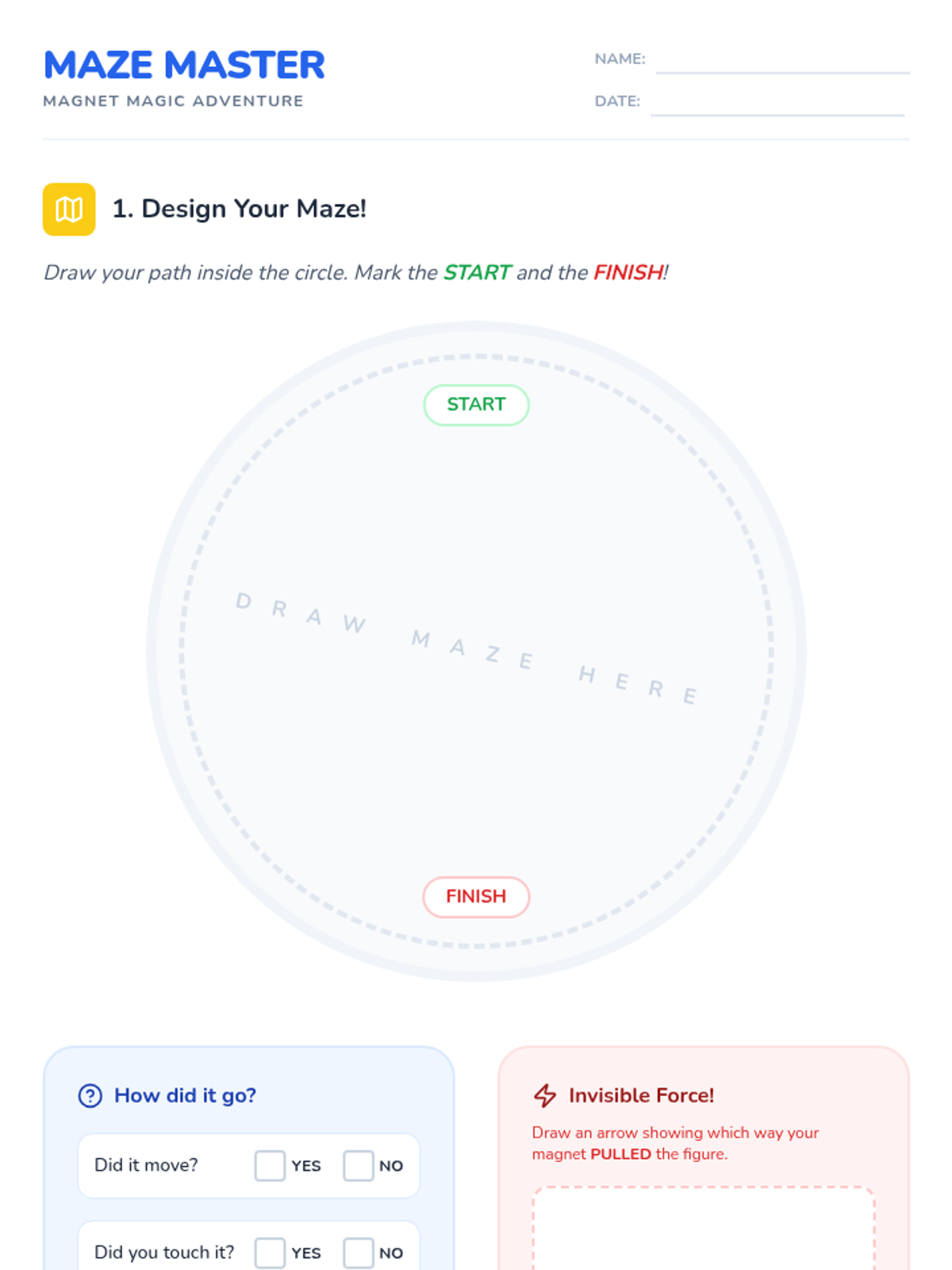 A hands-on introductory lesson for Kindergarten and 1st Grade students to explore magnetism as a non-contact force that can push and pull objects. Students will use magnets to navigate mazes and watch a demonstration of magnetic repulsion and attraction.