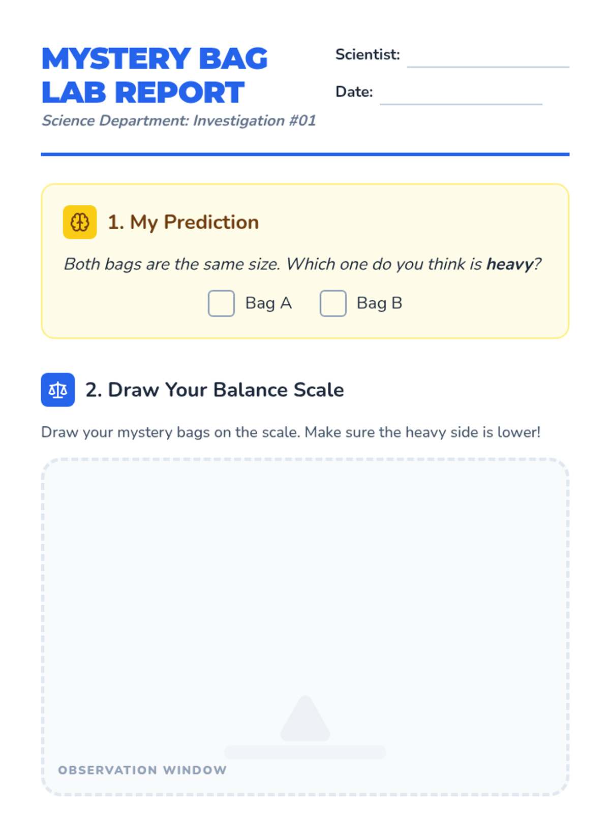 Students will practice making and testing predictions about the mass of objects using a balance scale, including a critical analysis of video evidence and a hands-on 'Predict, Check, Sort' activity.
