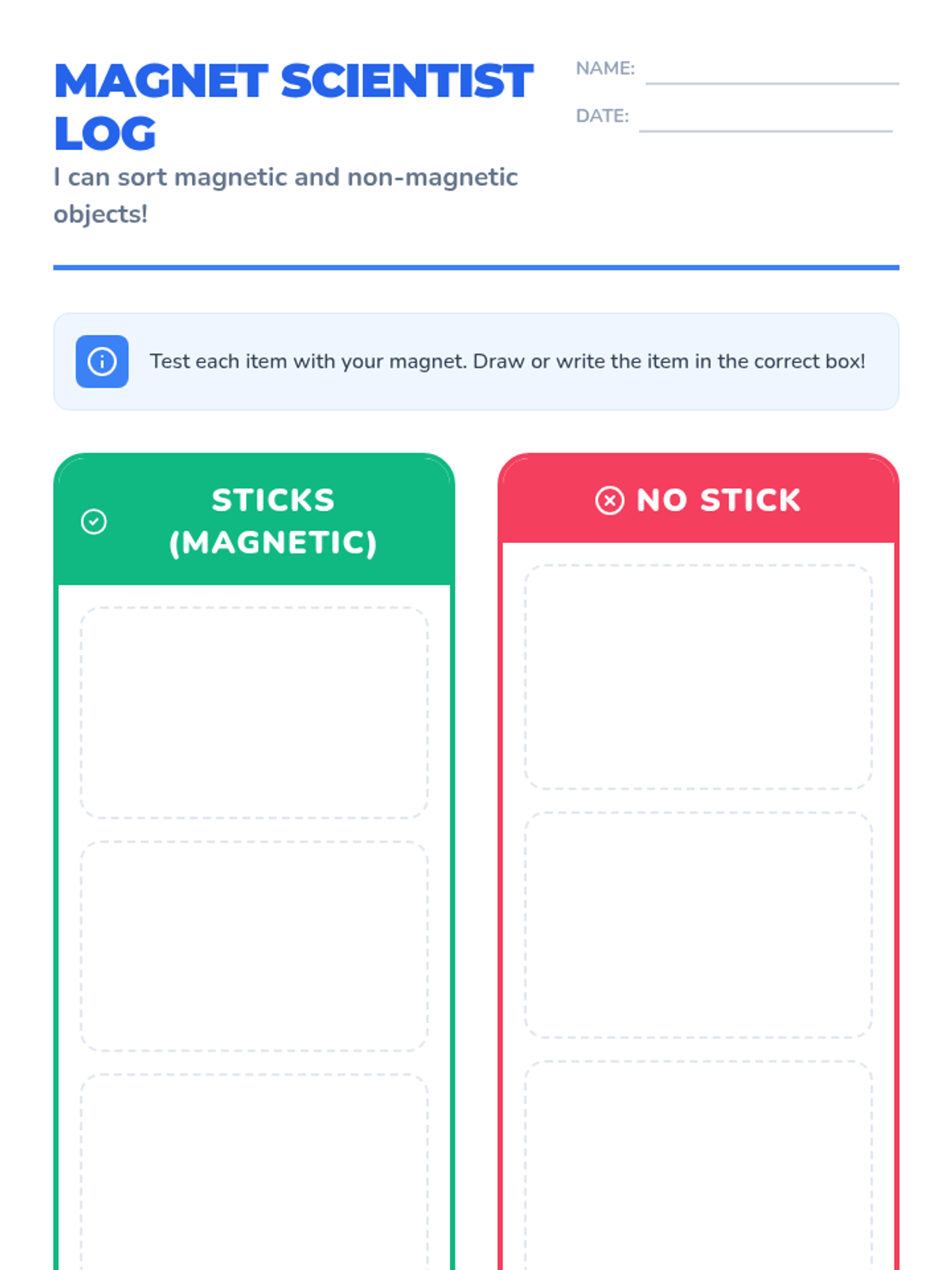Students will explore the invisible force of magnetism through a hands-on 'Magnetic Painting' activity and a virtual sorting lab. They will learn to predict and test whether items are attracted to magnets while creating unique process art.