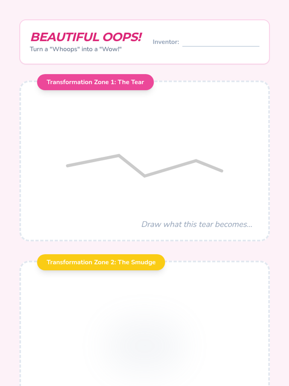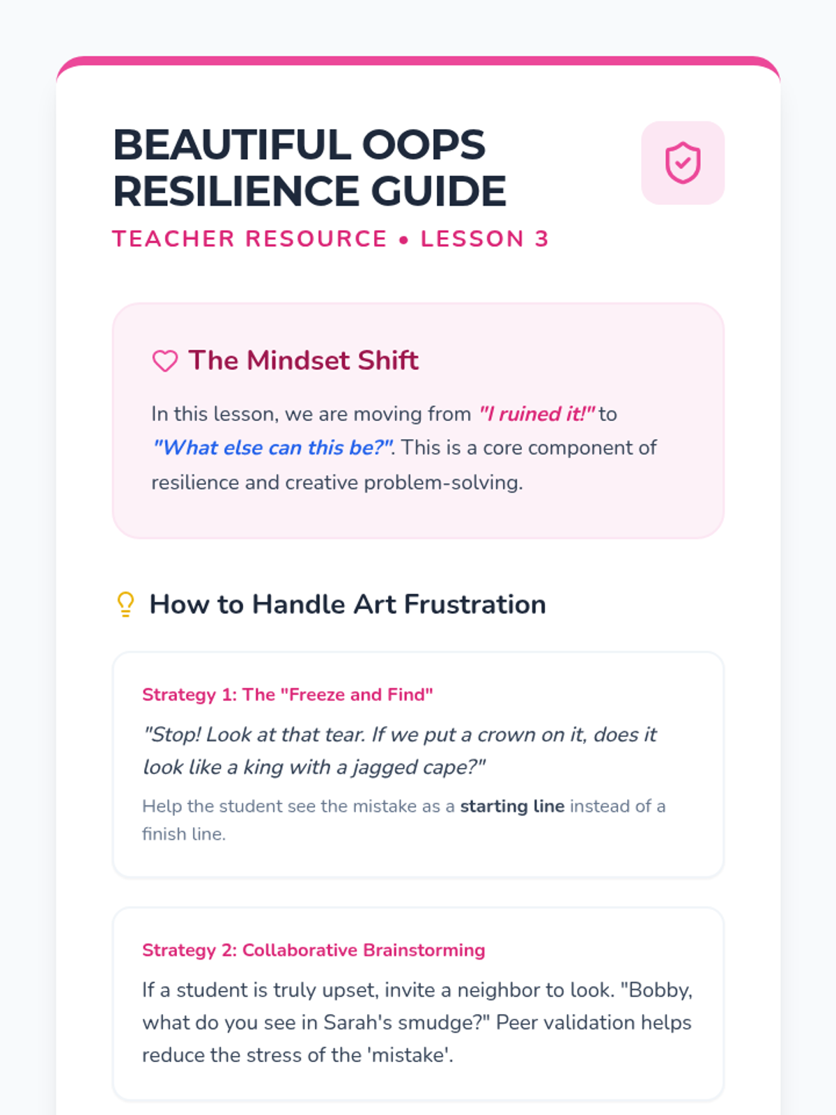 Inspired by 'Beautiful Oops', students learn to transform spills and tears into intentional art pieces to build adaptability.