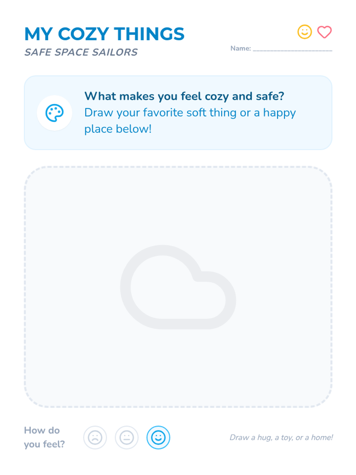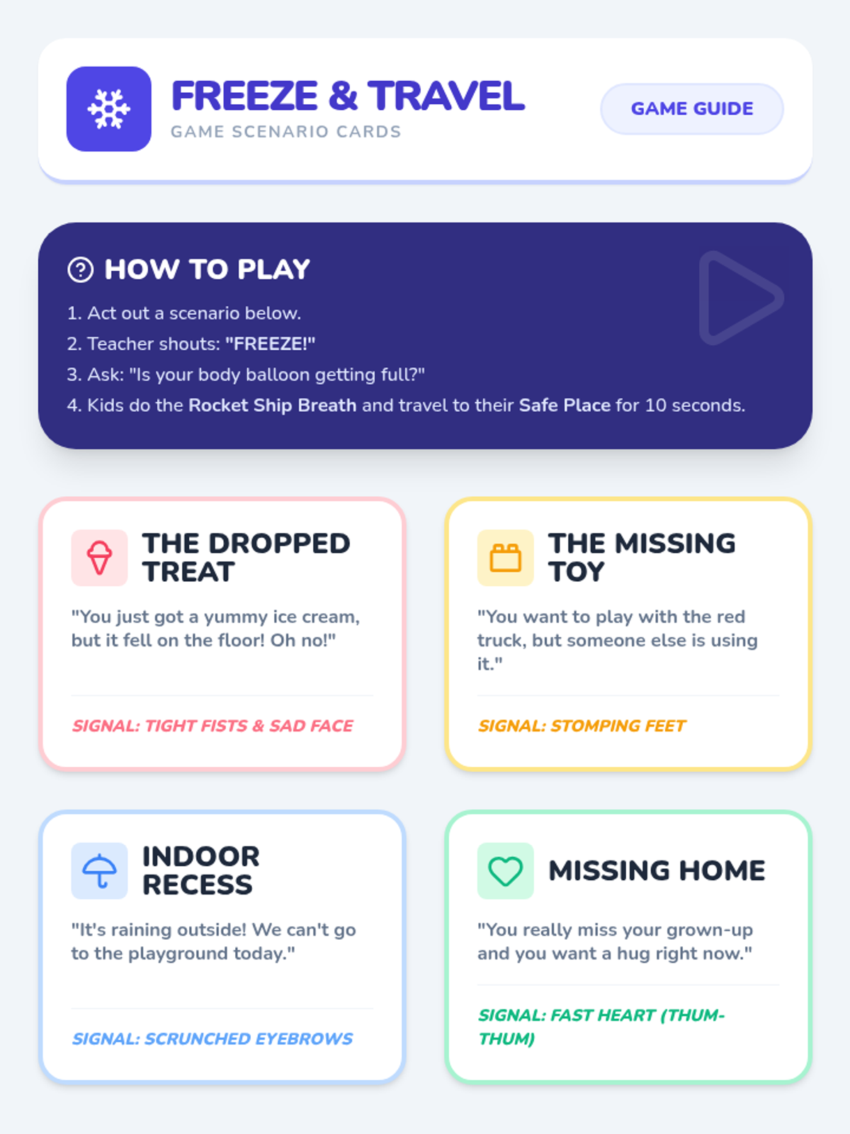 A trauma-informed play-based toolkit designed for young children (age 4) to explore emotions, learn self-regulation, and build a sense of safety through a board game, movement cards, and drawing prompts.