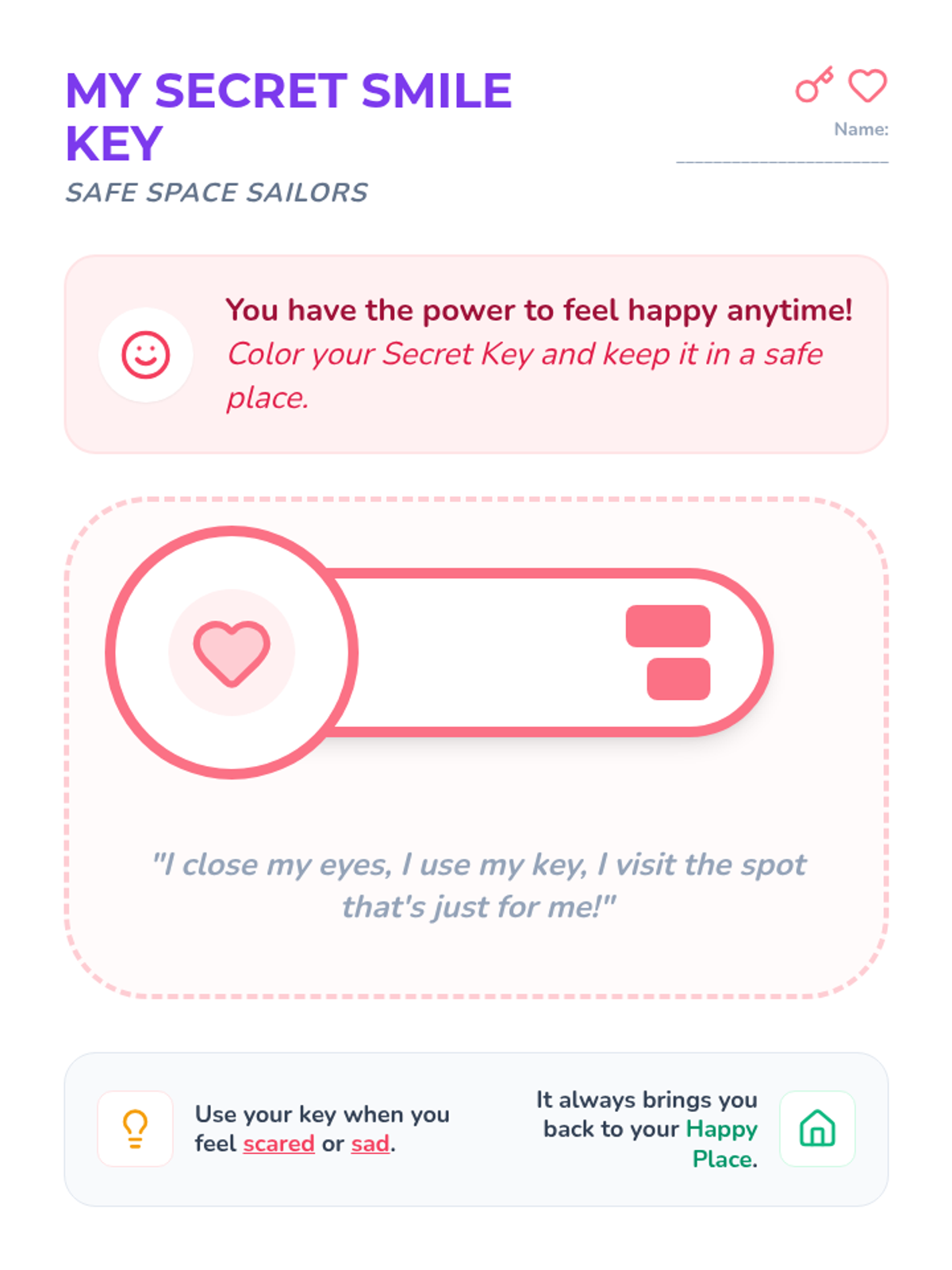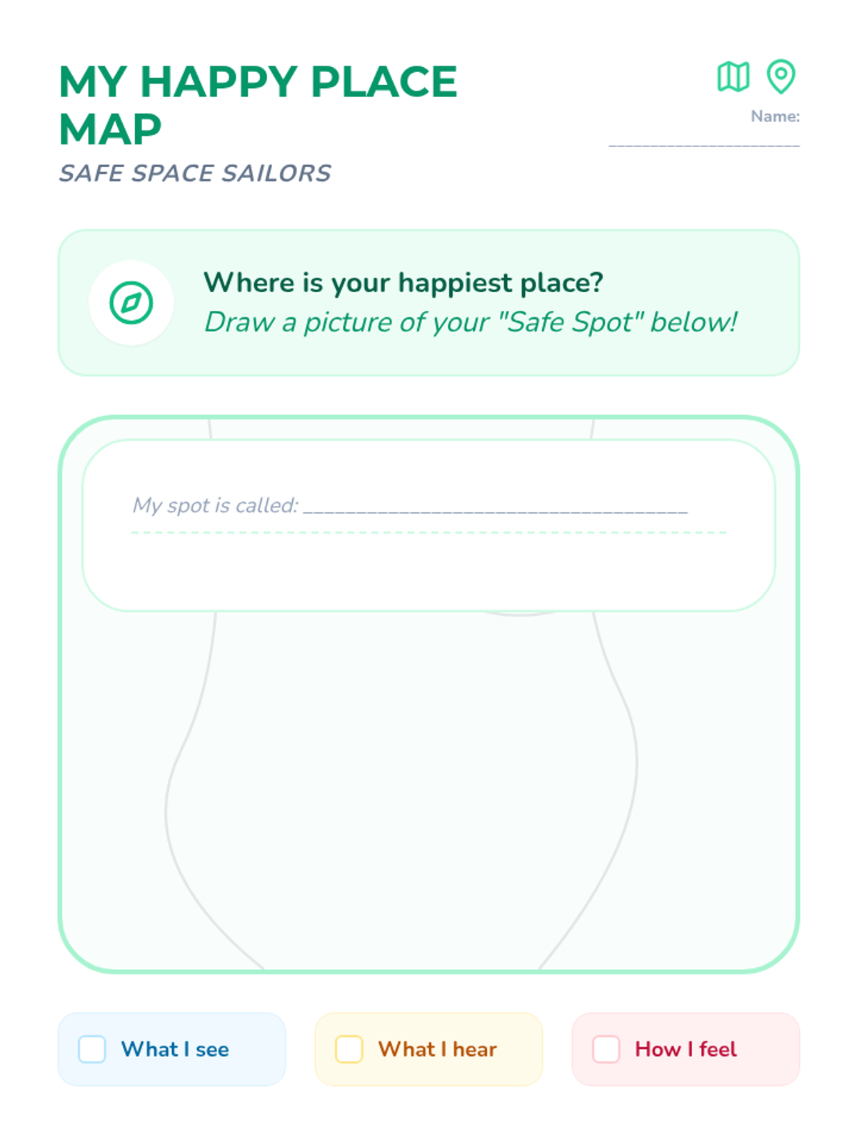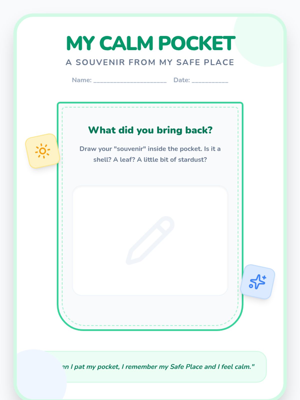 Using the metaphor of a camera, students learn to 'snap a picture' of their safe spot to keep in their brain.