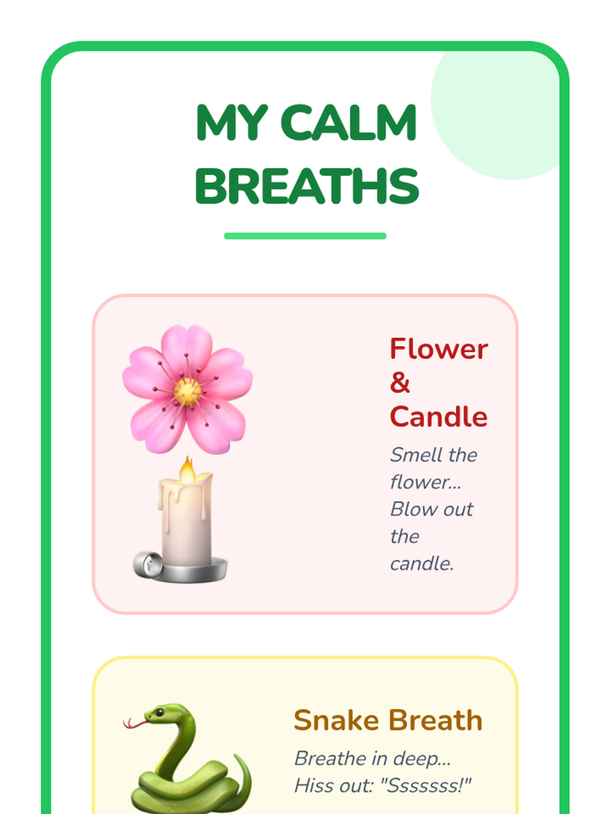 Students learn and practice deep breathing techniques using visual aids to help slow their heart rate and calm their physical bodies.
