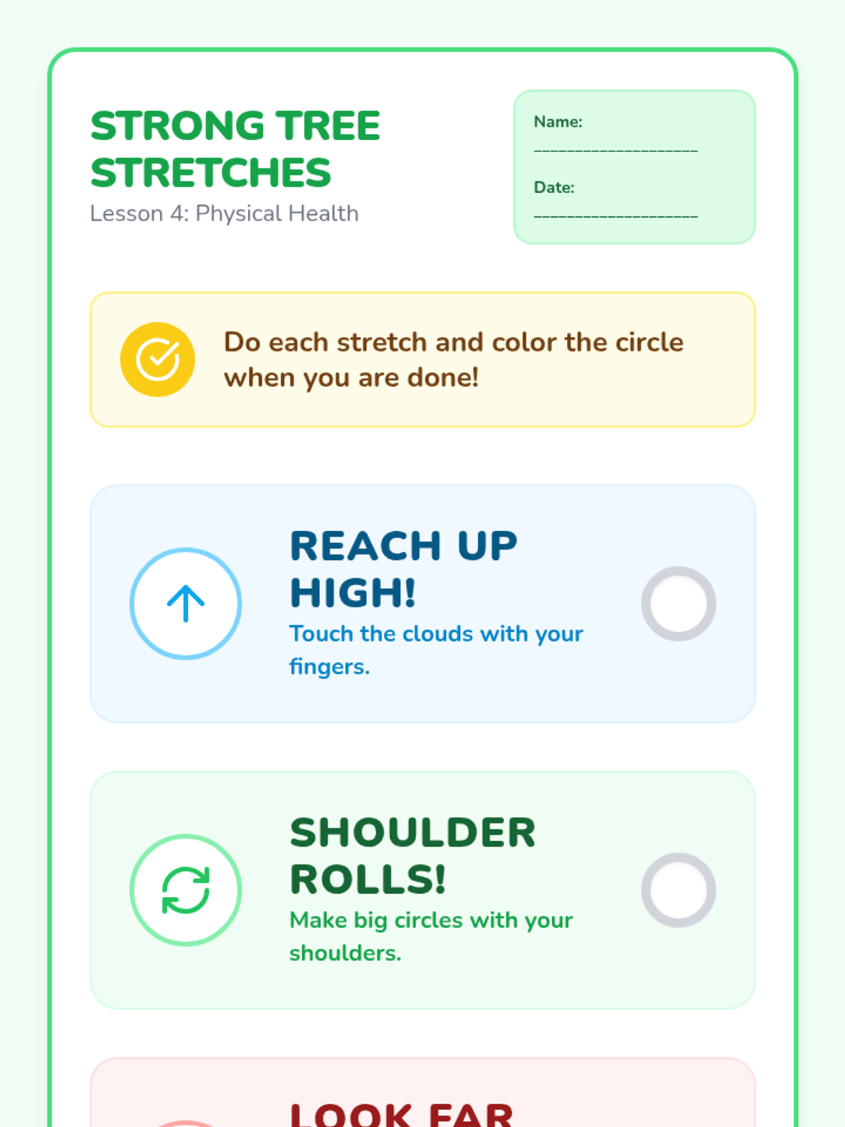 A focused lesson for 1st graders on identifying where stress lives in the body and learning the difference between 'helpful' and 'unhelpful' ways to react.