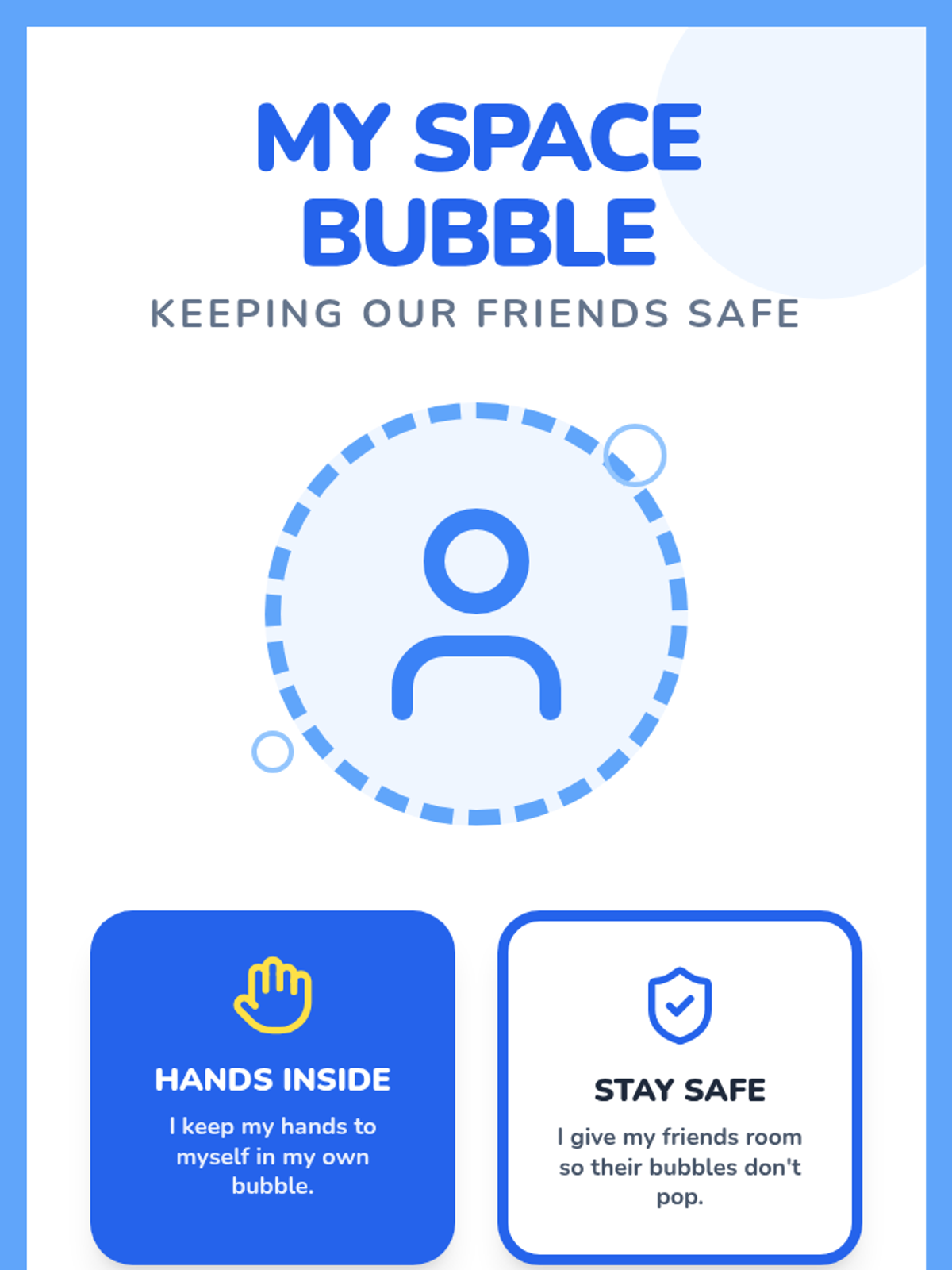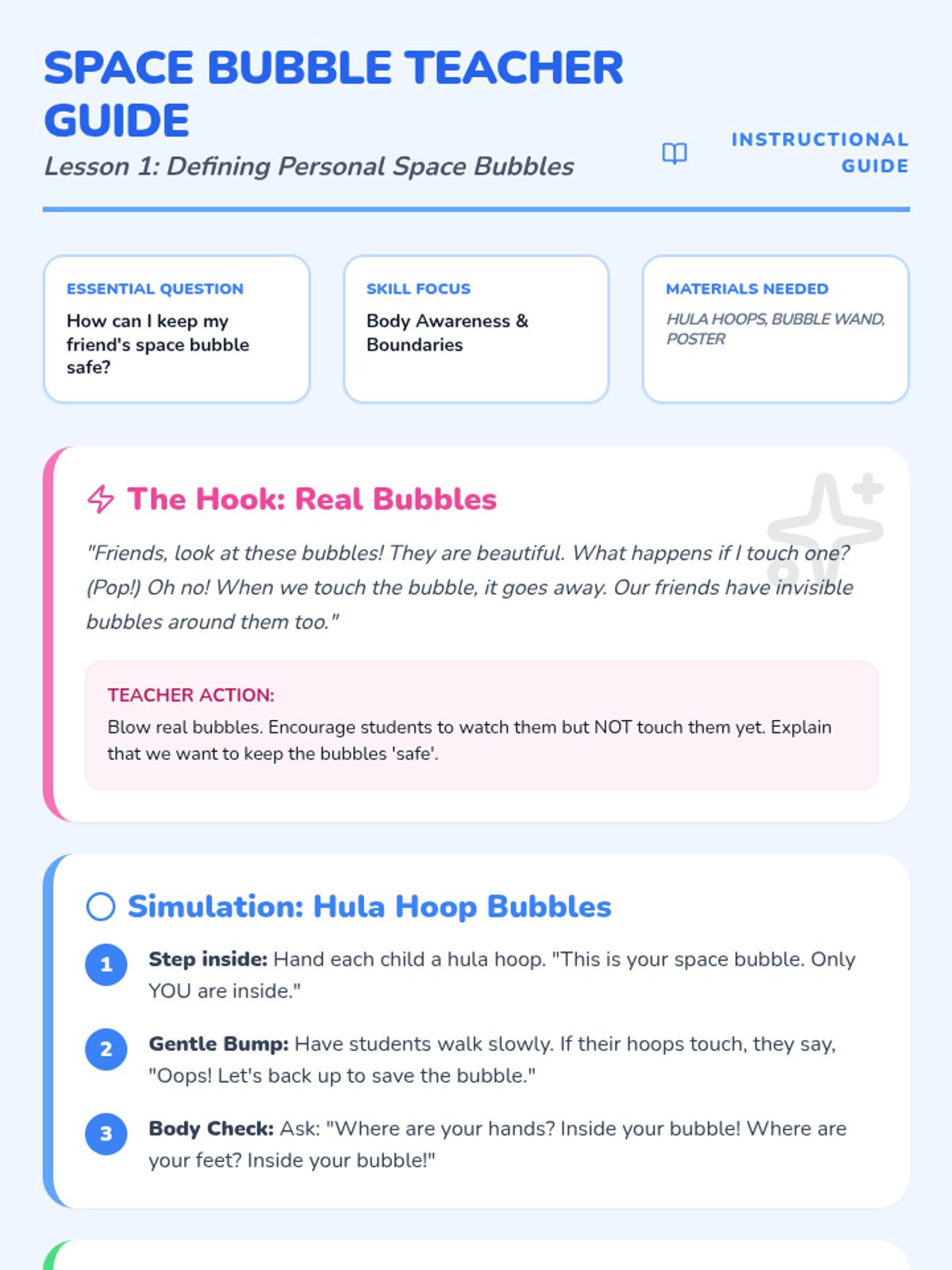 Students use hula hoops to visualize 'space bubbles' and learn about keeping hands to oneself through a social story.