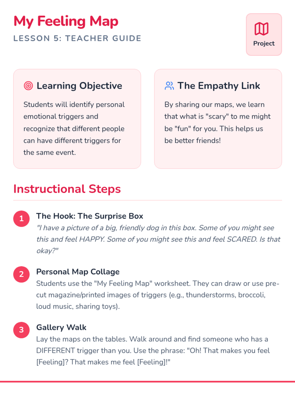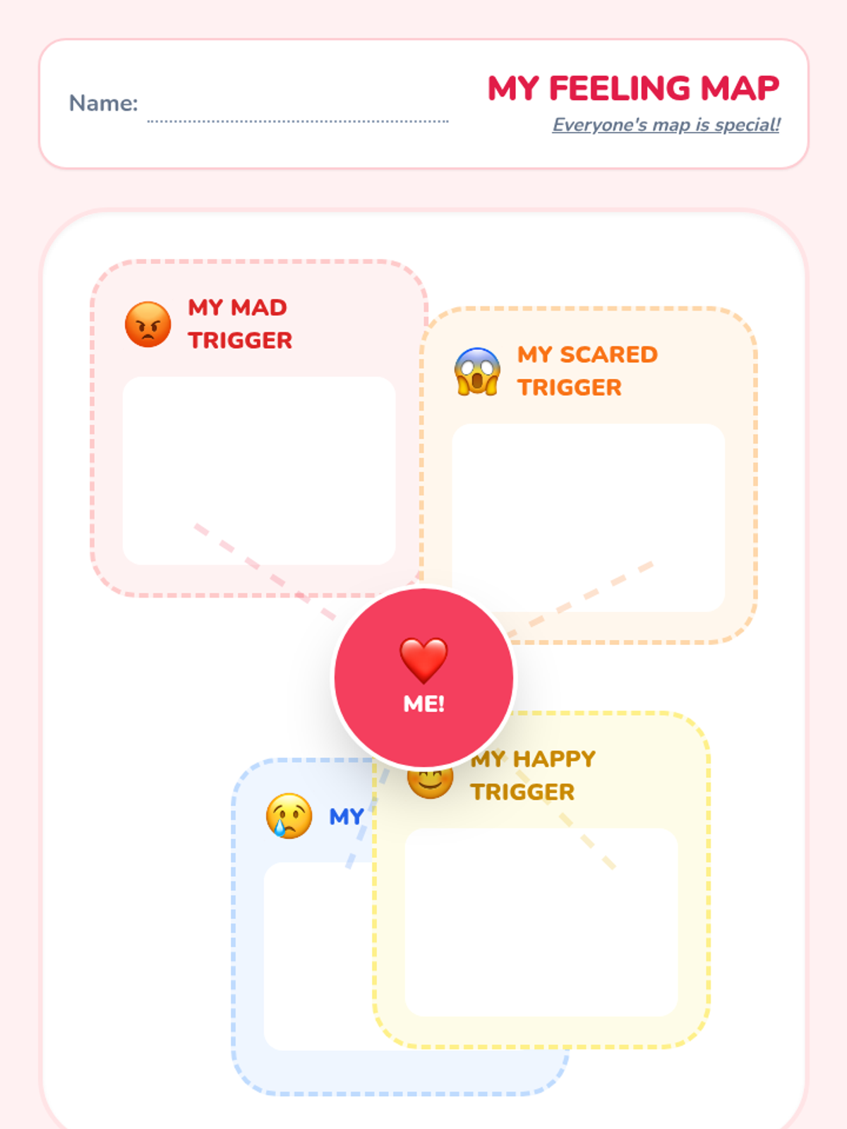 Students create personal maps of their own emotional triggers, normalizing that different events affect people in different ways.
