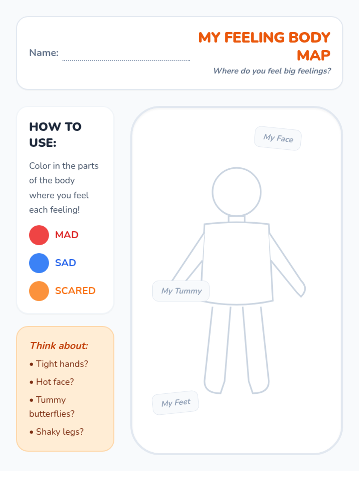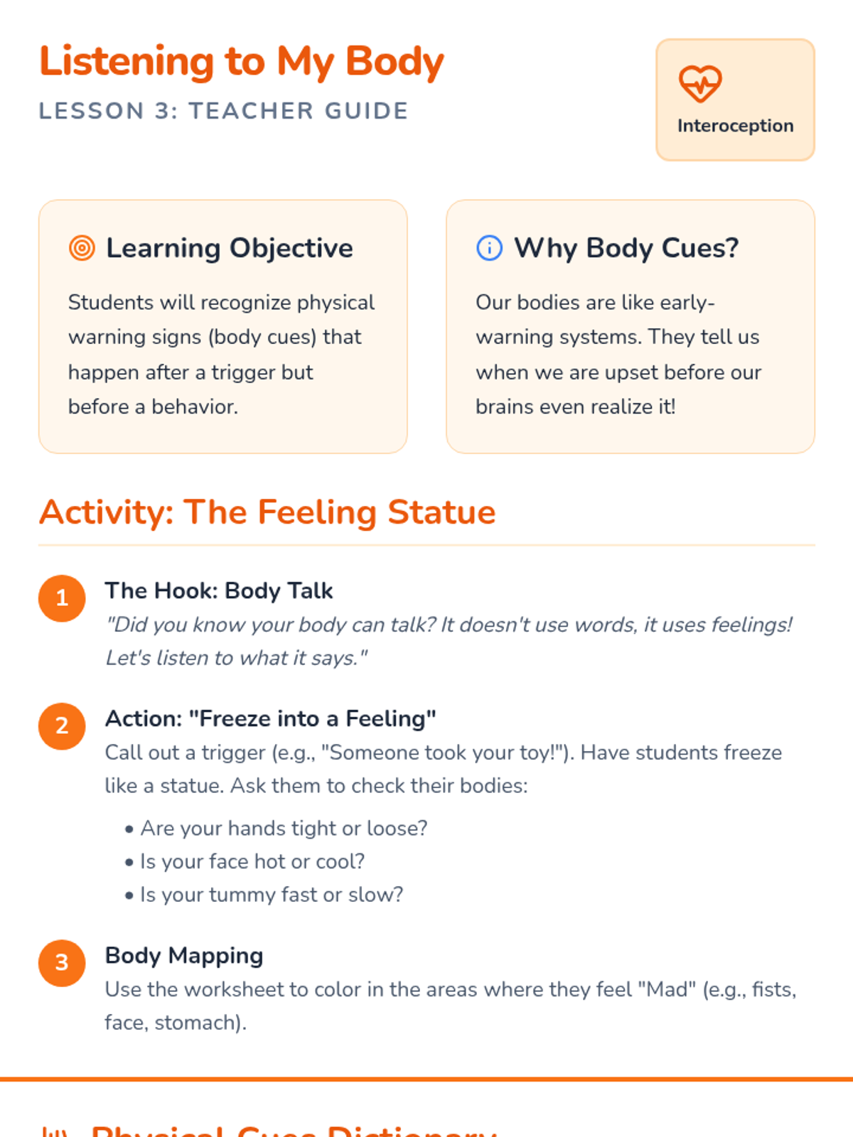 Students learn to recognize the physical warning signs their bodies give them after a trigger occurs but before a big behavior.