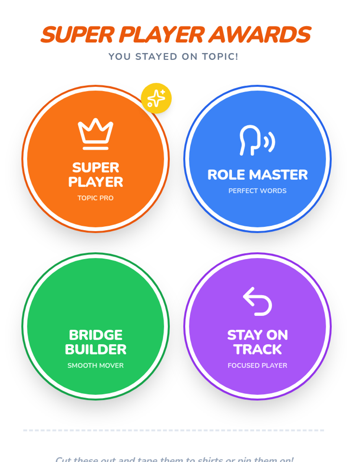 Students engage in a free-play session where they are rewarded with tokens for maintaining their role and topic for consecutive turns. The focus is on sustained, reciprocal dialogue within the chosen scenario.